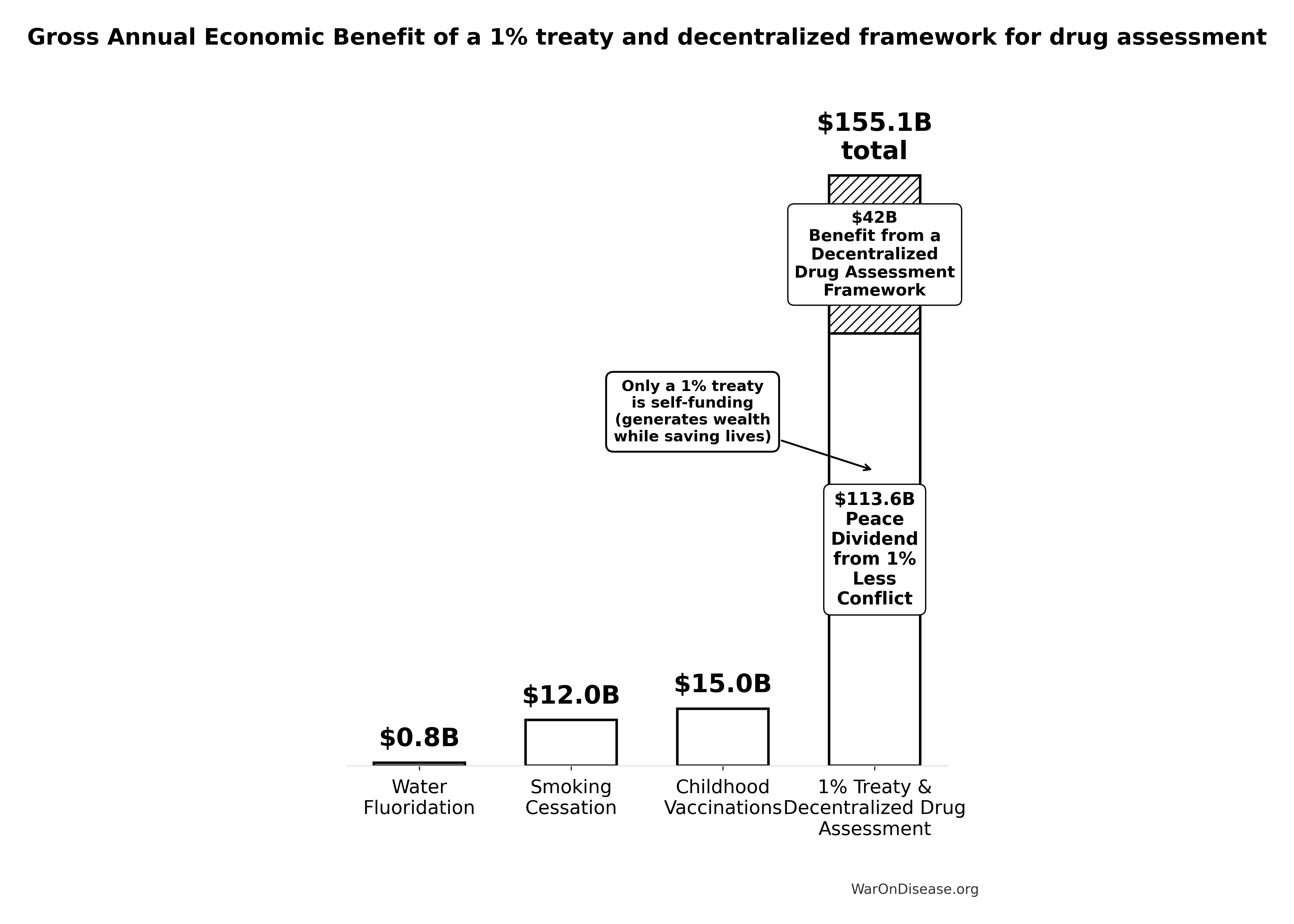 war-on-disease, 1-percent-treaty, medical-research, public-health, peace-dividend, decentralized-trials, dfda, dih, victory-bonds, health-economics, cost-benefit-analysis, clinical-trials, drug-development, regulatory-reform, military-spending, peace-economics, decentralized-governance, wishocracy, blockchain-governance, impact-investing