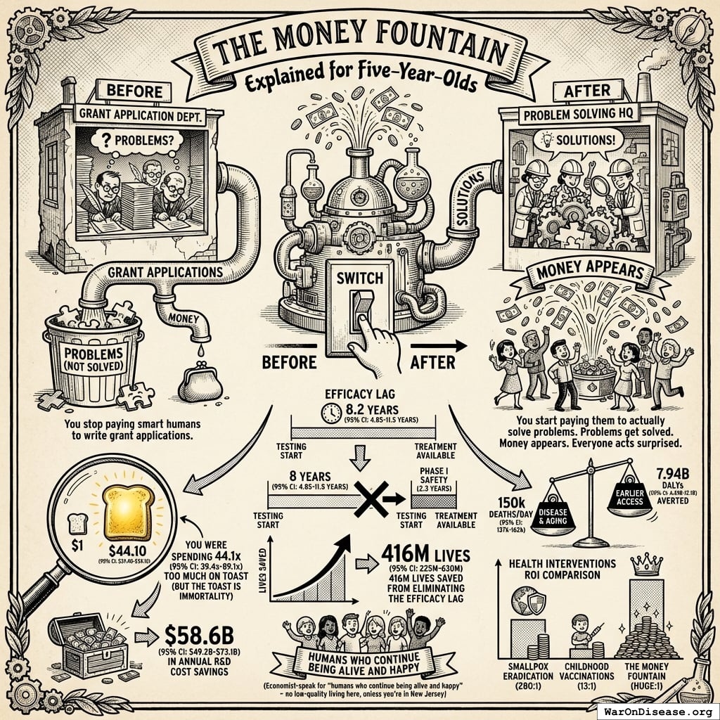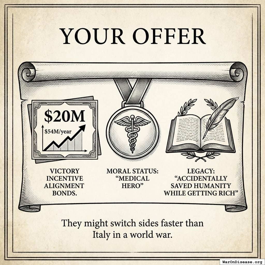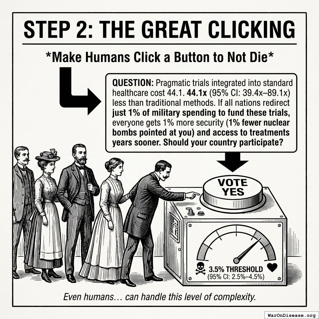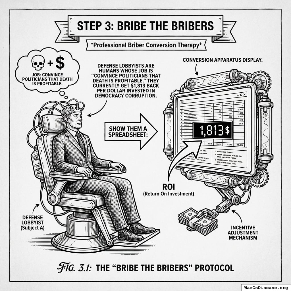 The treaty passes, redirecting $27.2B in papers annually. Rich humans get 272% returns on what they gave you, forever. Politicians get career advancement from voting yes (the same fund pays for both). This is a good deal because forever is a long time. Unless you die from preventable diseases. Which you’re fixing, so it works out.