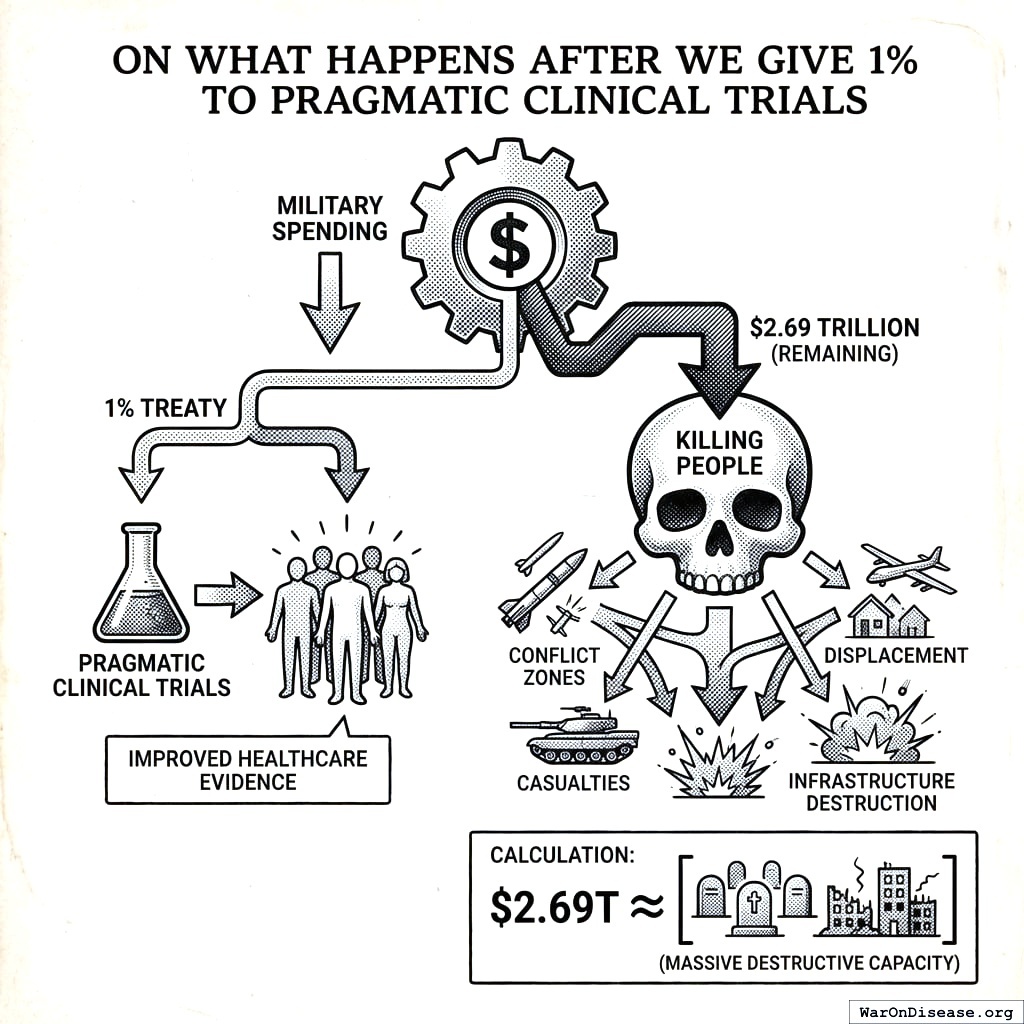 A 1% treaty143 redirects 1% of military spending to fund pragmatic clinical trials. This leaves $2.69 trillion for killing people.