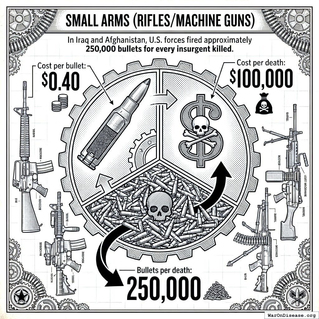 In Iraq and Afghanistan, U.S. forces fired approximately 250 thousand rounds for every insurgent killed8.