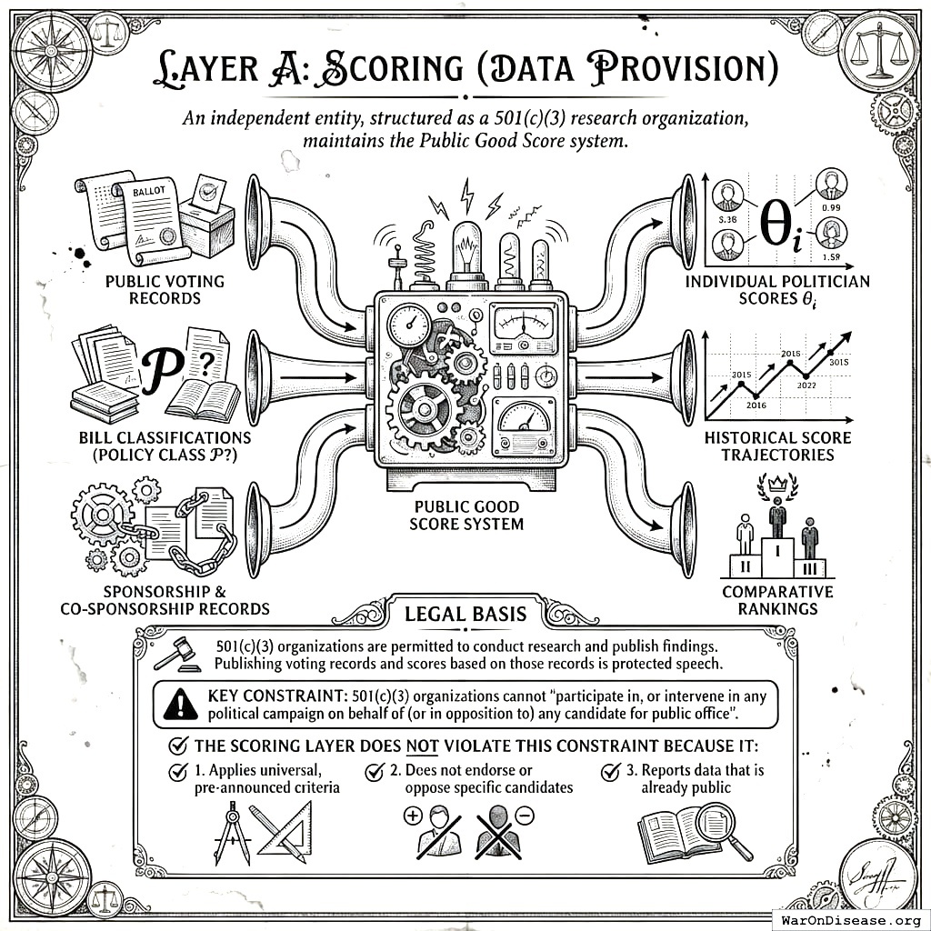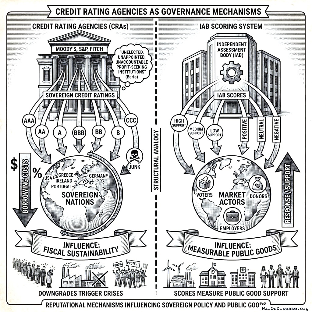 A natural objection: “How is this not just PACs + voter scorecards + SIBs?” The answer is that existing mechanisms fail to solve the Olsonian problem because they operate in isolation. PACs exist but remain dominated by concentrated interests due to the 90:1 capital asymmetry. Scorecards exist (League of Conservation Voters, NRA ratings) but lack teeth without accompanying financial incentives. SIBs exist but require government to agree upfront, which faces the same collective action problem IABs solve. IABs integrate all three components (investor capital, electoral accountability, post-office incentives) into a single instrument where each component’s effectiveness depends on the others, and where the funding mechanism creates permanent financial incentives for diffuse beneficiaries to overcome collective action barriers. The whole is greater than the sum of its parts because the integrated architecture makes coordinated capital deployment economically rational for millions of individual investors.