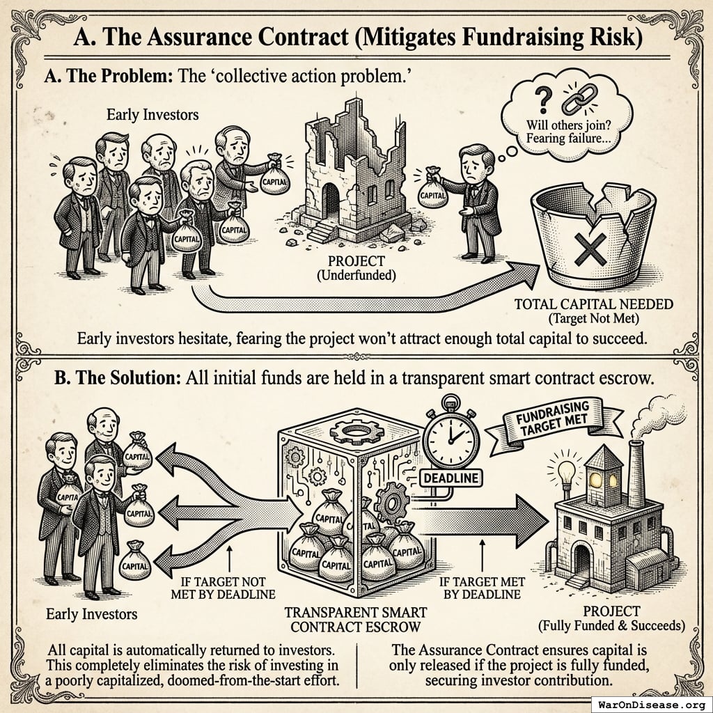 A. The Assurance Contract (Mitigates Fundraising Risk)