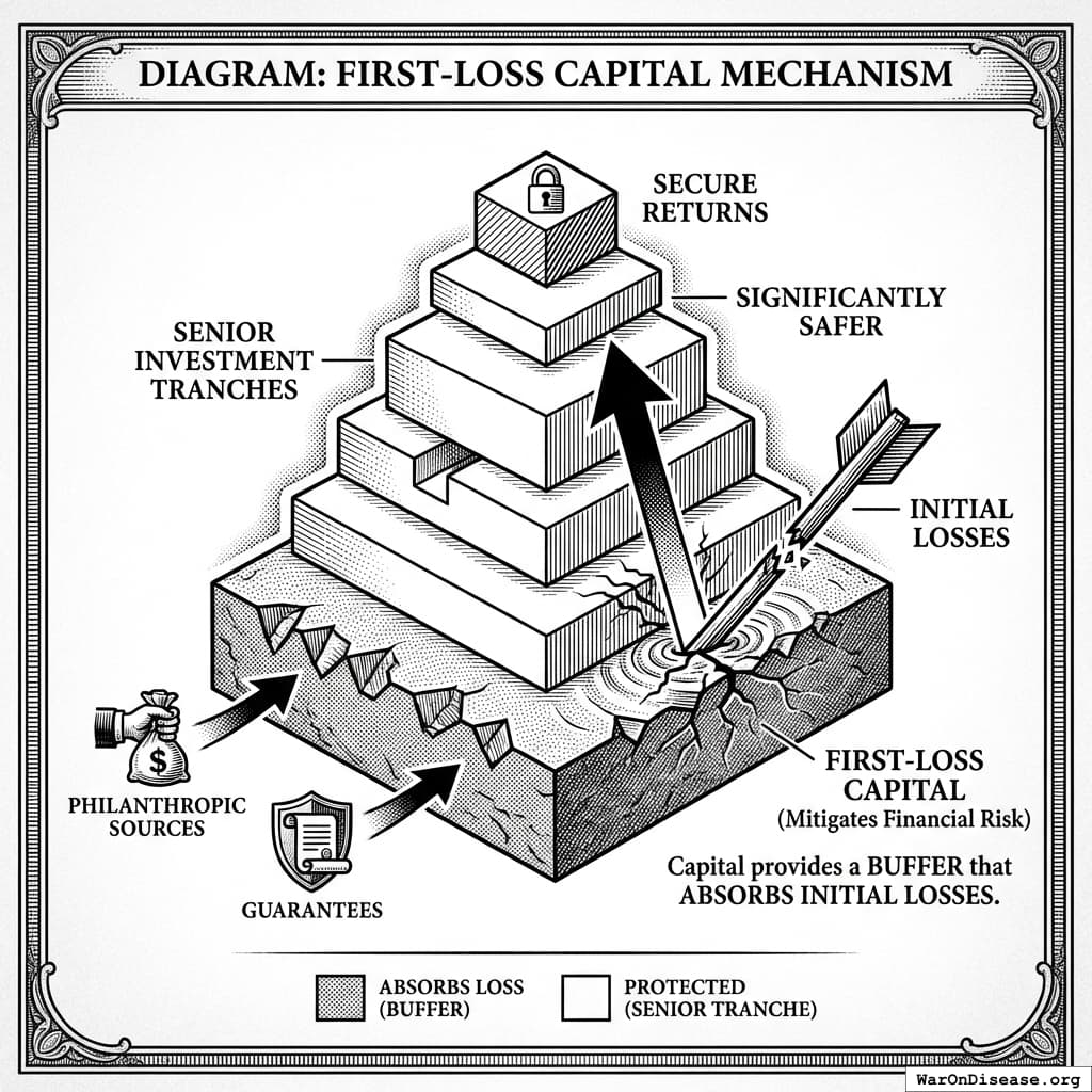 - The Solution: The capital stack is structured to include a first-loss tranche funded by philanthropic sources and guarantees. This capital provides a buffer that absorbs initial losses, making the senior investment tranches significantly safer and more attractive to institutional capital.