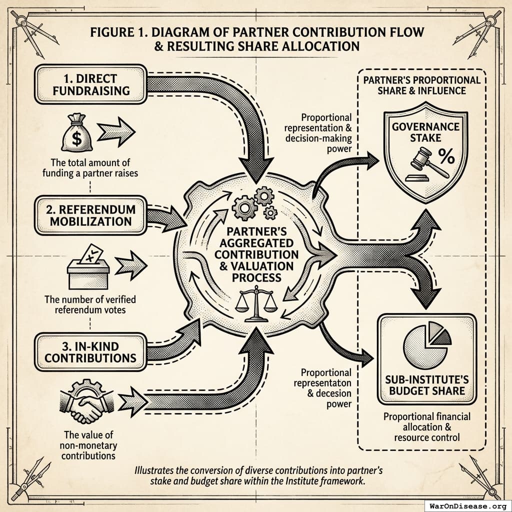To ensure fairness and reward meaningful contributions, you implement a transparent system to track the value each partner brings to the coalition. A partner’s governance stake and proportional share of their sub-Institute’s budget will be influenced by their verified contributions during the treaty ratification campaign.