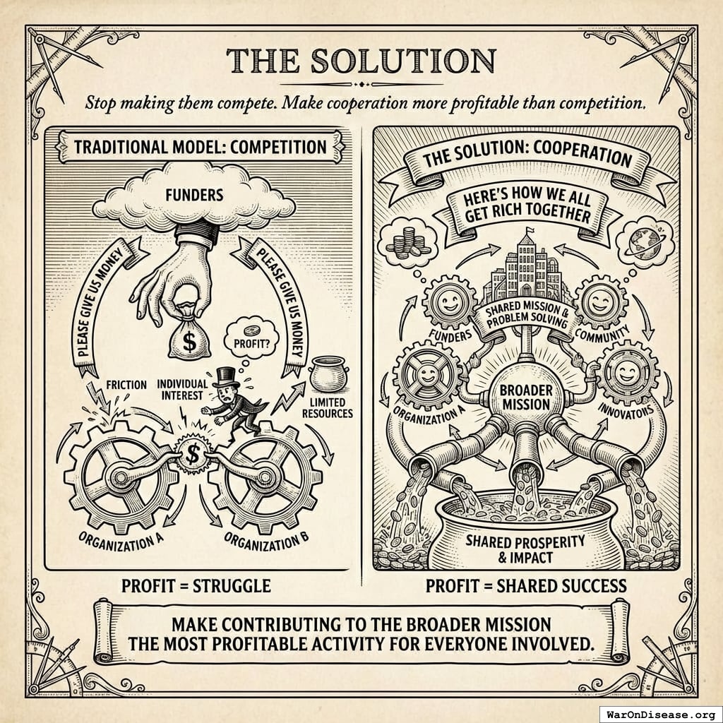 You offer a model that transforms the traditional “please give us money” relationship into “here’s how we all get rich together by solving the problem.”