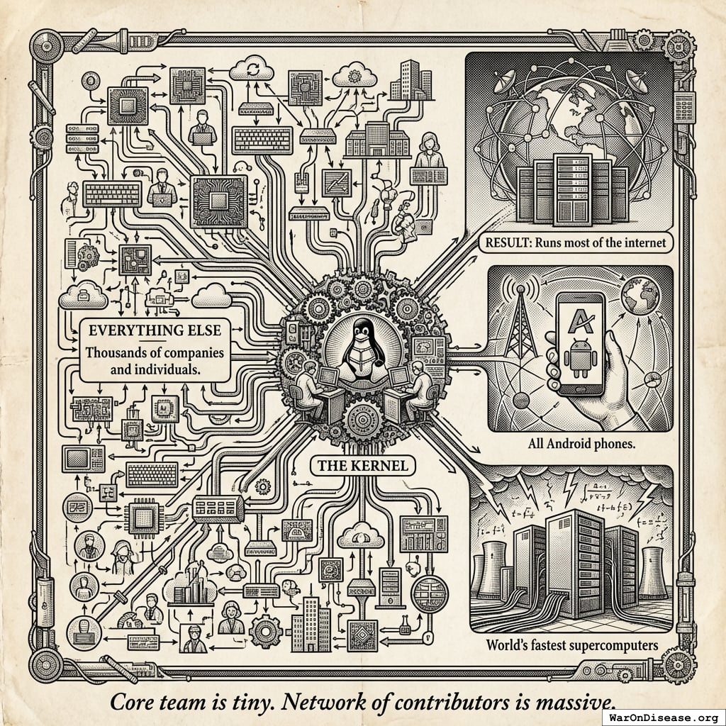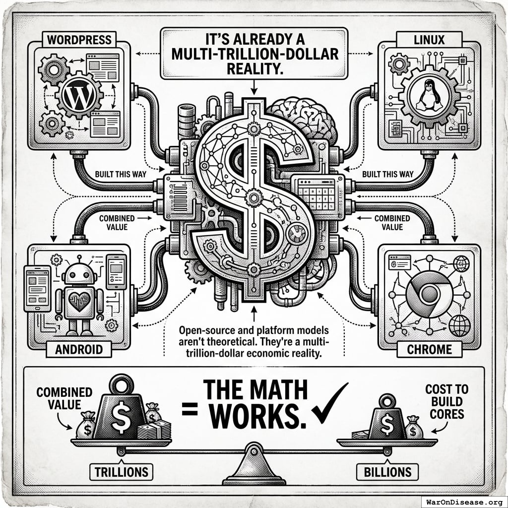 WordPress proved this works for websites. Linux proved it works for operating systems. Your framework will prove it works for curing disease.