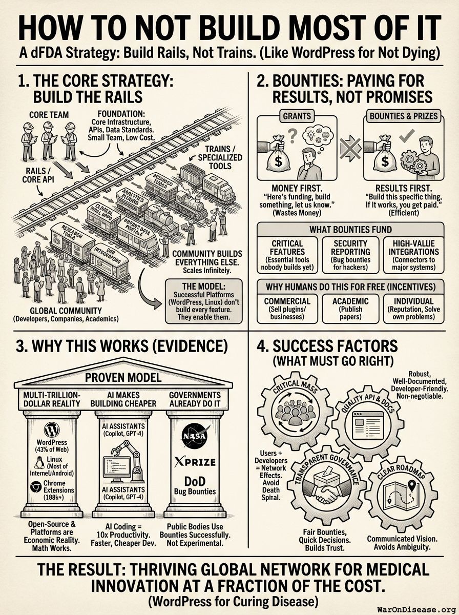 The infrastructure for a decentralized framework for drug assessment (dFDA) won’t cost billions to build. Because you’re not building most of it.