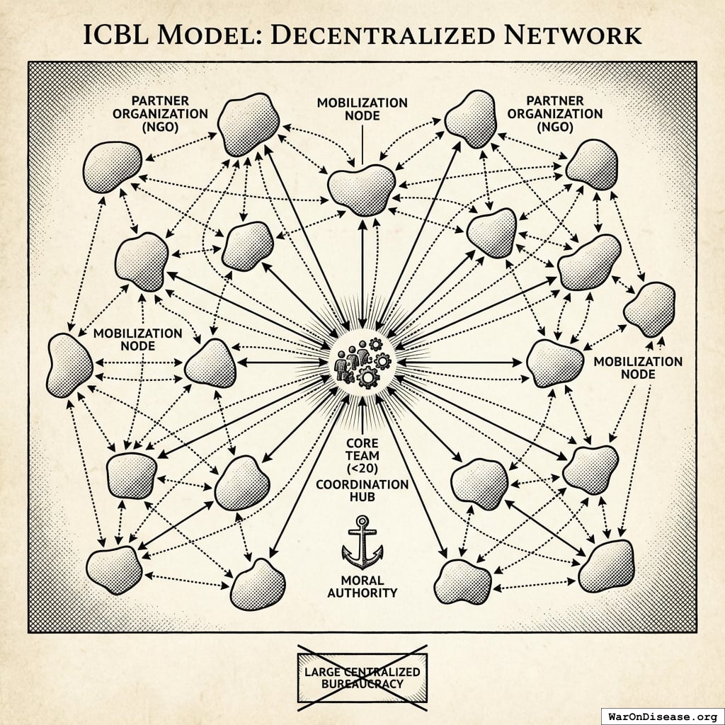 Model: The ICBL was not a large, centralized organization. It was a lean, decentralized network of NGOs that coordinated a global political campaign. Its power came from its moral authority and its ability to mobilize a vast network, not a large internal headcount.