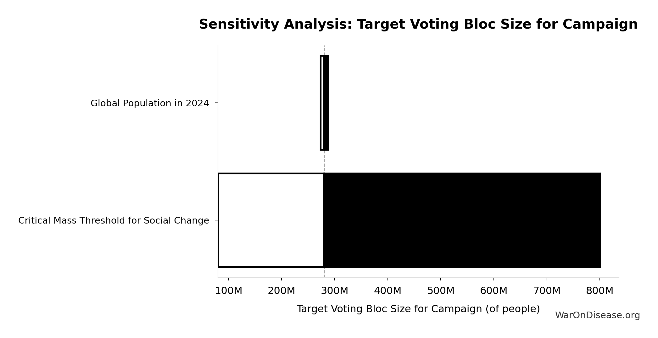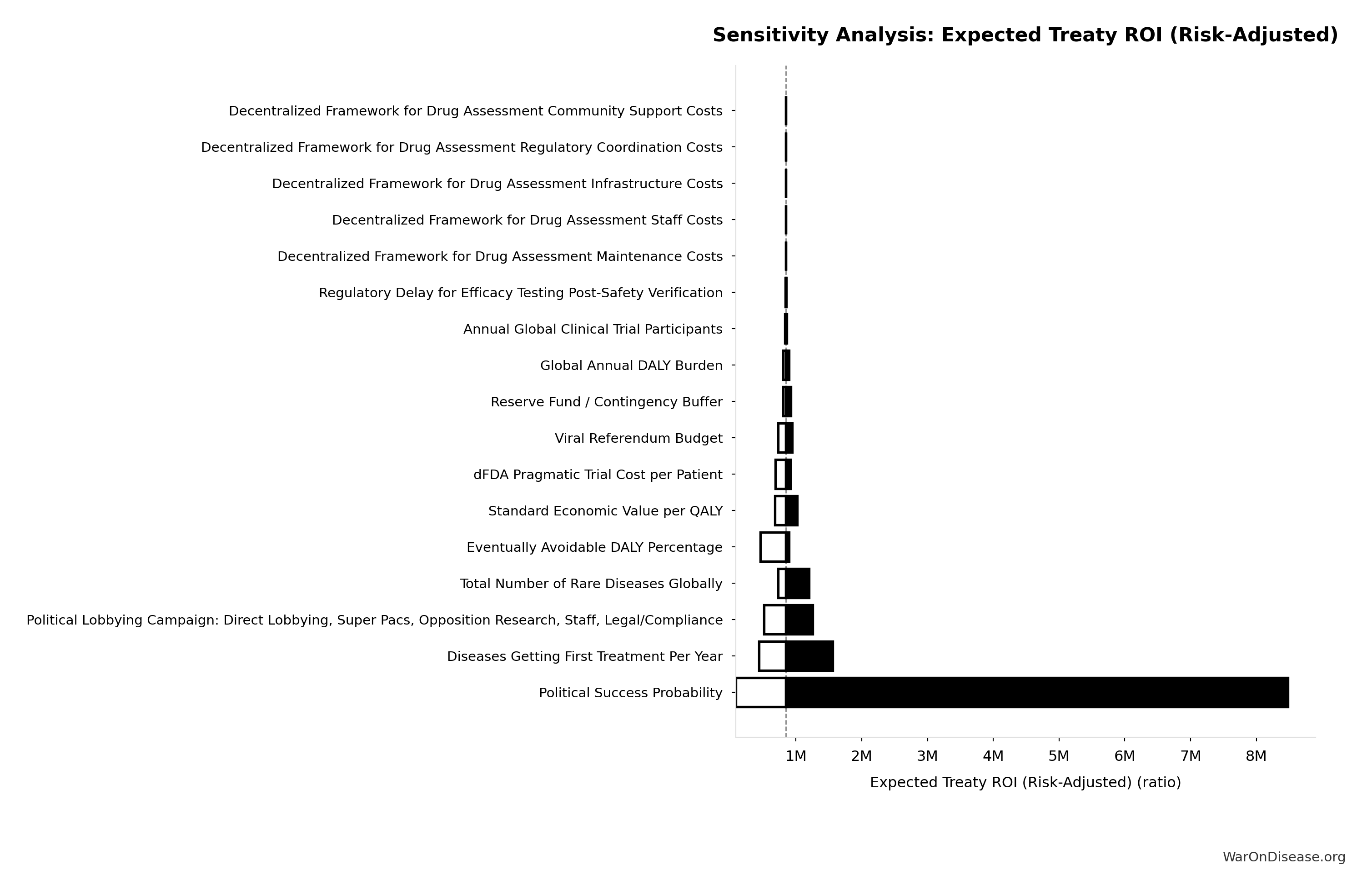 Fraction of campaign + lobbying spending needed to achieve policy reform. Accounts for efficiency gains from coordination, message clarity, and public interest alignment. Range 0.4-1.2 reflects uncertainty about political dynamics.