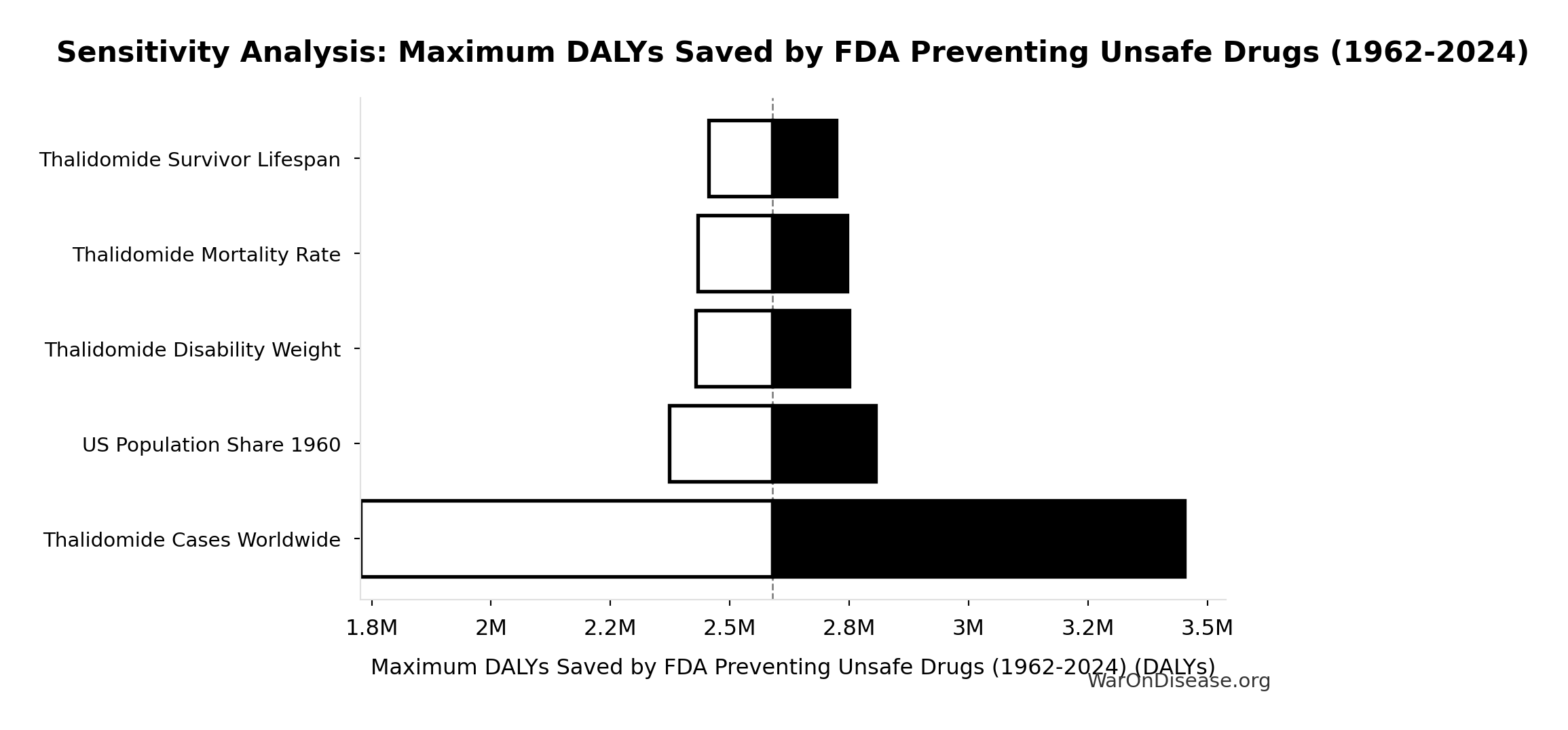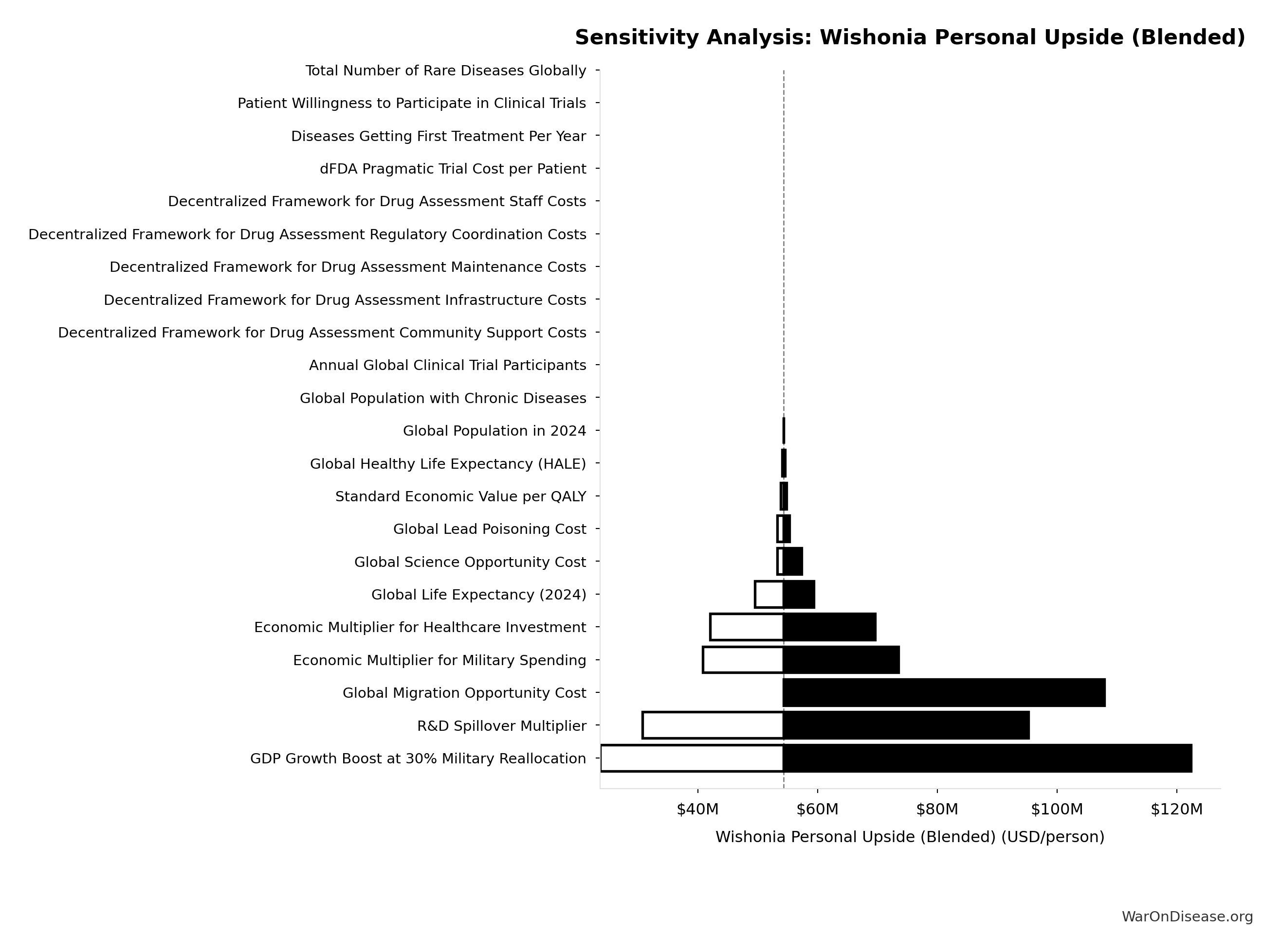 What this means: This estimate is highly uncertain. The true value likely falls between $20M and $150M (±65%). This represents a very wide range that our Monte Carlo simulations account for when calculating overall uncertainty in the results.
