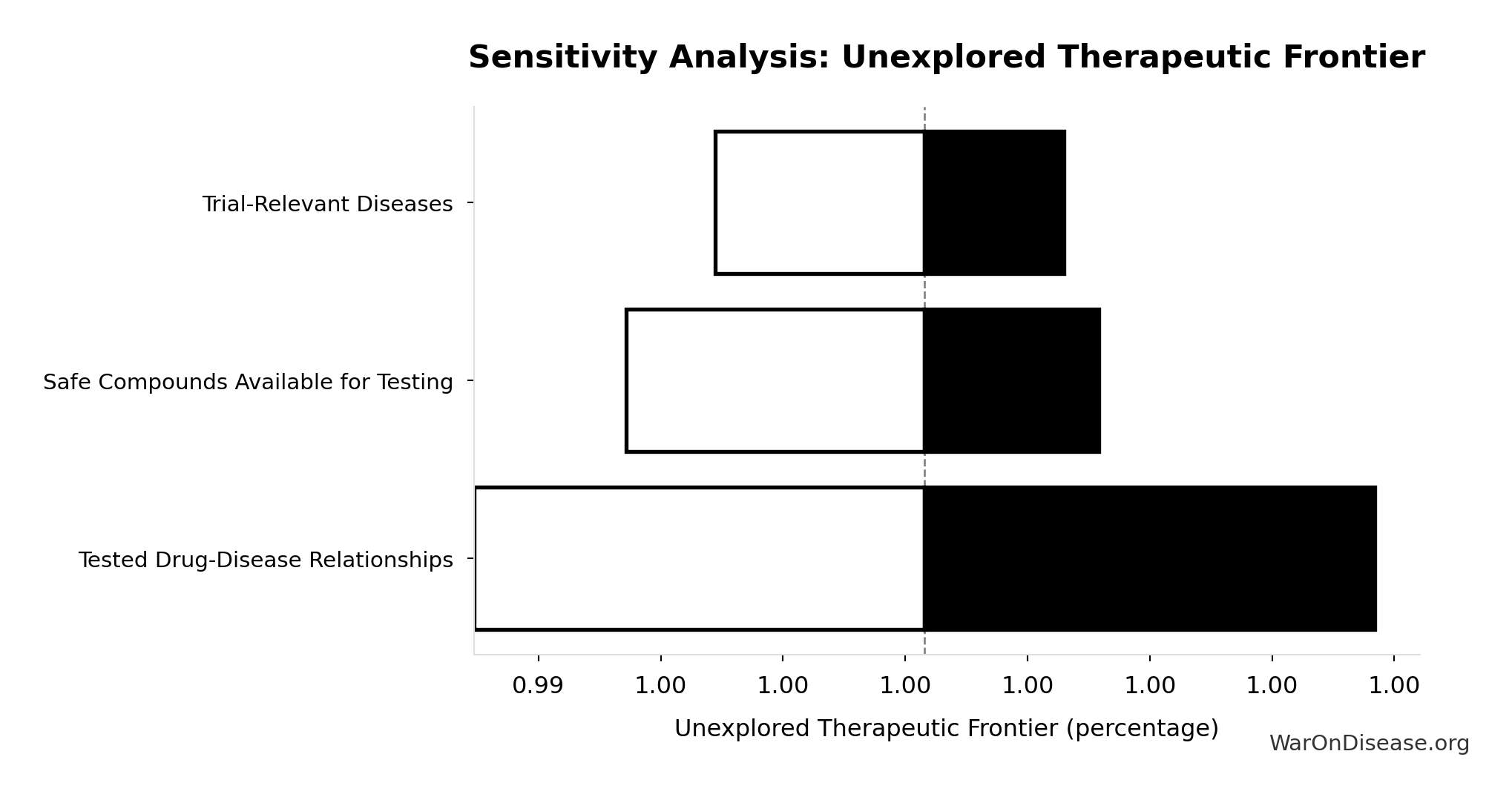 What this means: This estimate is highly uncertain. The true value likely falls between 0.4x and 1.2x (±57%). This represents a very wide range that our Monte Carlo simulations account for when calculating overall uncertainty in the results.