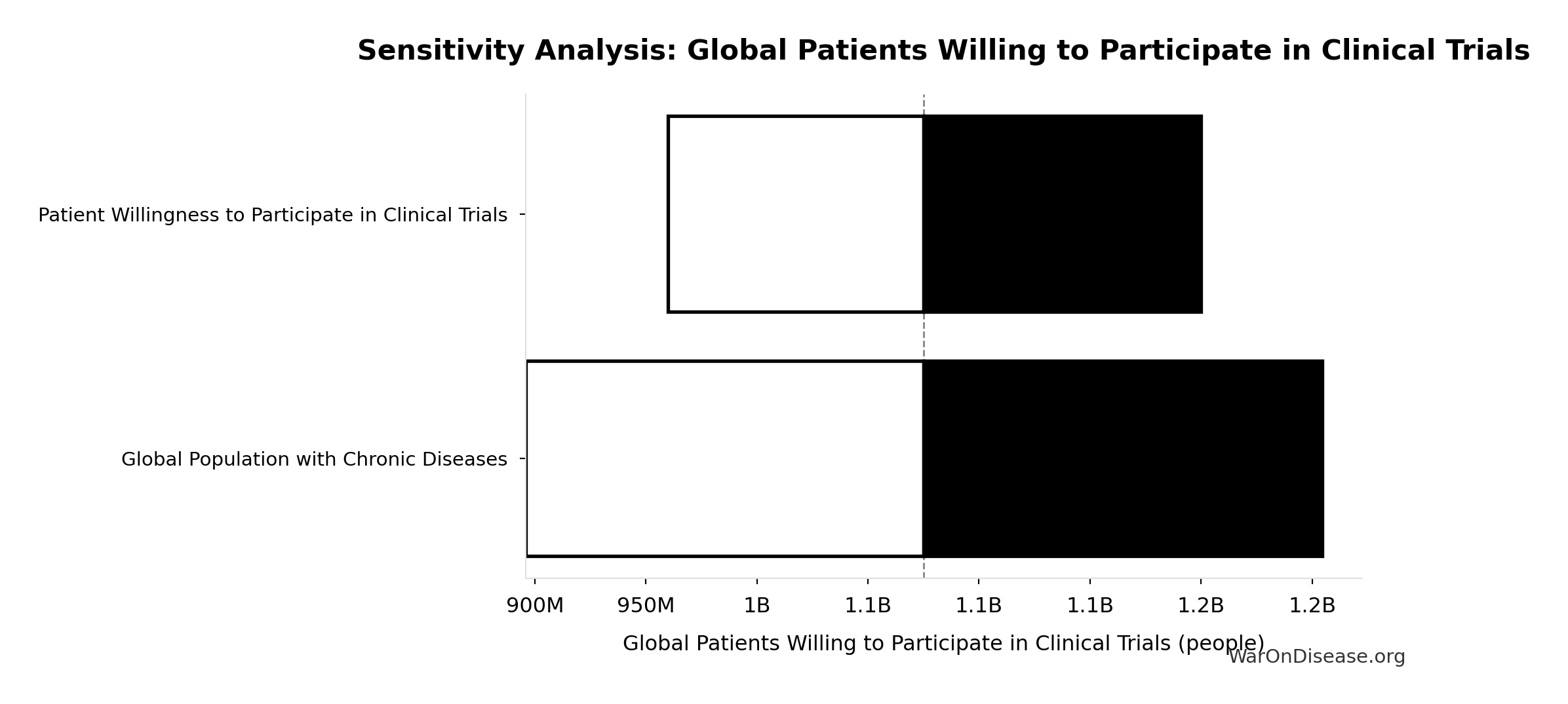 What this means: This estimate has moderate uncertainty. The true value likely falls between 800 diseases and 1.2 thousand diseases (±20%). This represents a reasonable range that our Monte Carlo simulations account for when calculating overall uncertainty in the results.