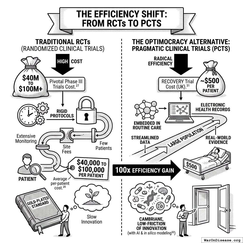 The RECOVERY trial, for example, cost only about $500 per patient... By contrast, the median per-patient cost of a pivotal trial for a new therapeutic is around $41,000. Additional sources: https://manhattan.institute/article/slow-costly-clinical-trials-drag-down-biomedical-breakthroughs