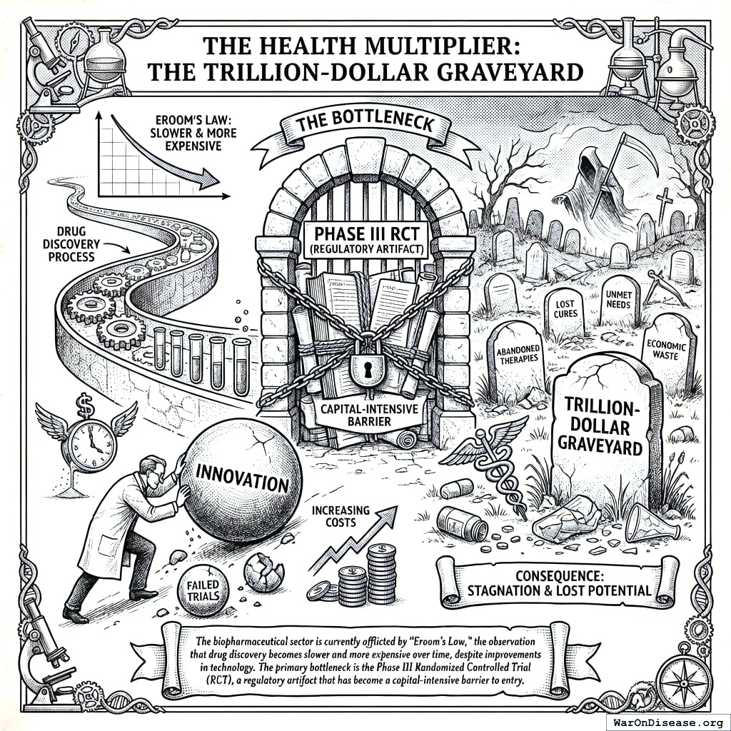 If the Waste Ledger is a tragedy of burning capital, the Opportunity Ledger is a tragedy of unrealized exponentials. This ledger attempts to price the “dog that didn’t bark,” the cures, technologies, and economic explosions that would exist if governance prioritized velocity and scientific leverage over stasis.