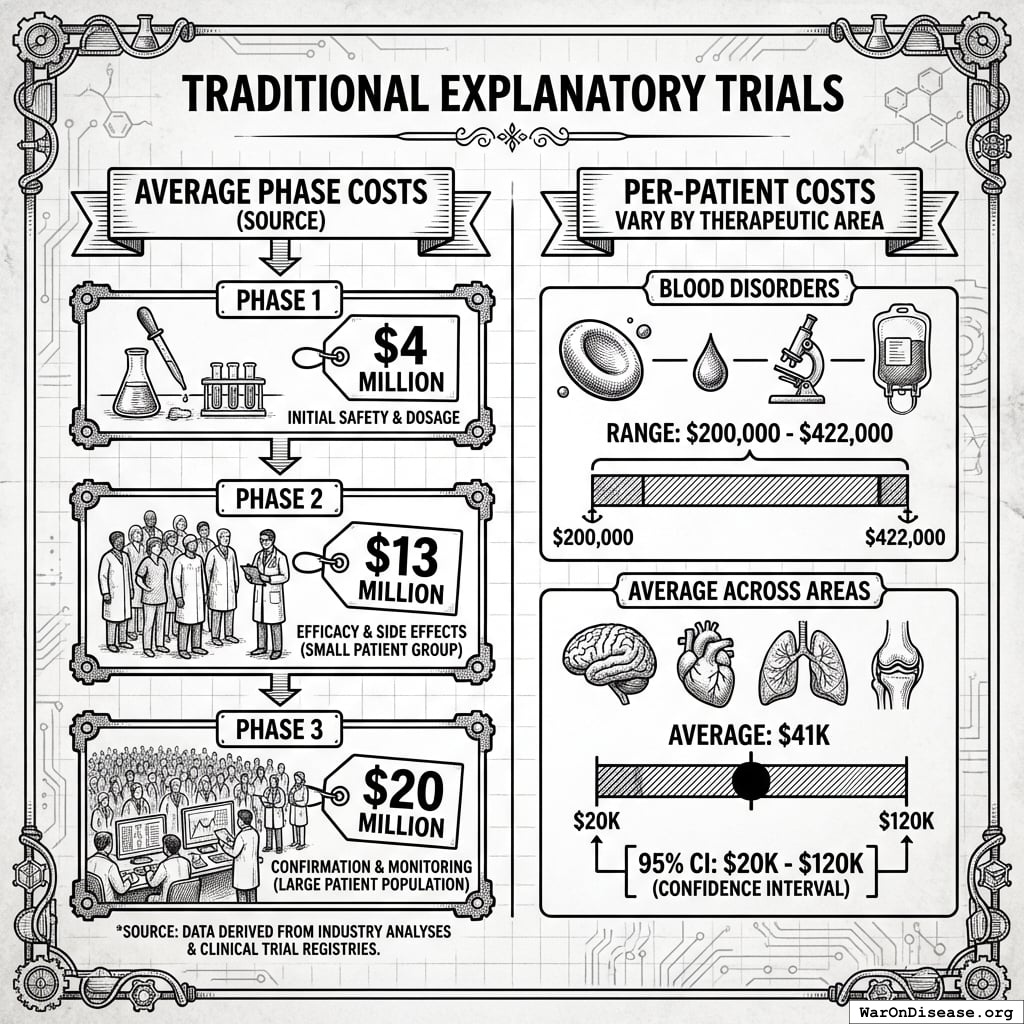 - RECOVERY Trial: $500 (95% CI: $400-$2.50K)/patient - a 82x (95% CI: 50x-94.1x) cost reduction vs traditional trials97