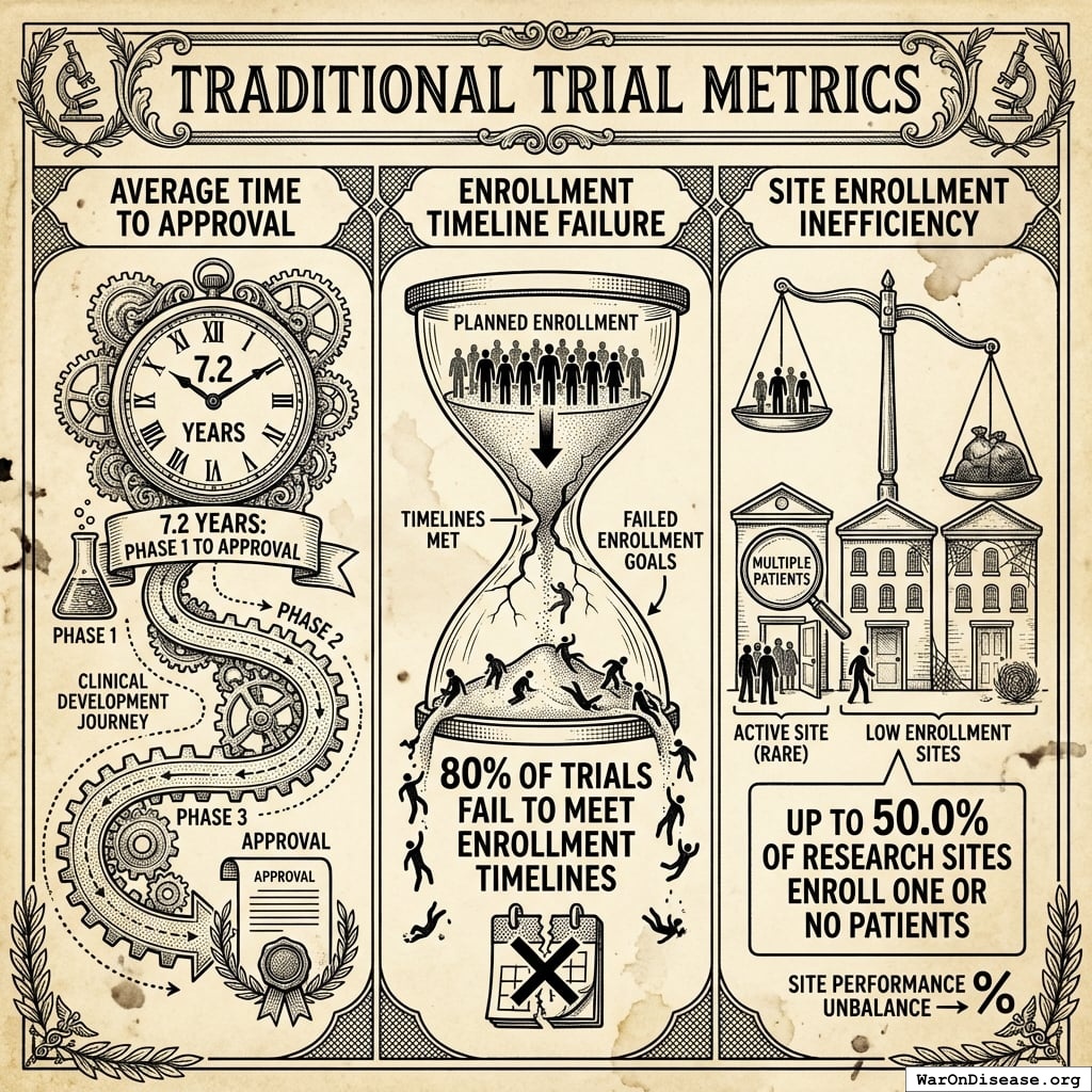 The NIH Pragmatic Trials Collaboratory funds trials at **$500K for planning phase, $1M/year for implementation**—a tiny fraction of NIH’s budget. The ADAPTABLE trial cost **$14 million** for **15,076 patients** (= **$929/patient**) versus **$420 million** for a similar traditional RCT (30x cheaper), yet pragmatic trials remain severely underfunded. PCORnet infrastructure enables real-world trials embedded in healthcare systems, but receives minimal support compared to basic research funding. Additional sources: https://commonfund.nih.gov/hcscollaboratory | https://pcornet.org/wp-content/uploads/2025/08/ADAPTABLE_Lay_Summary_21JUL2025.pdf | https://www.ncbi.nlm.nih.gov/pmc/articles/PMC5604499/