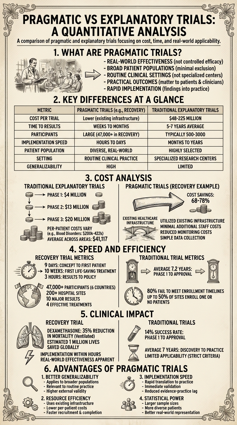 | Metric | Pragmatic Trials (e.g., RECOVERY) | Traditional Explanatory Trials |