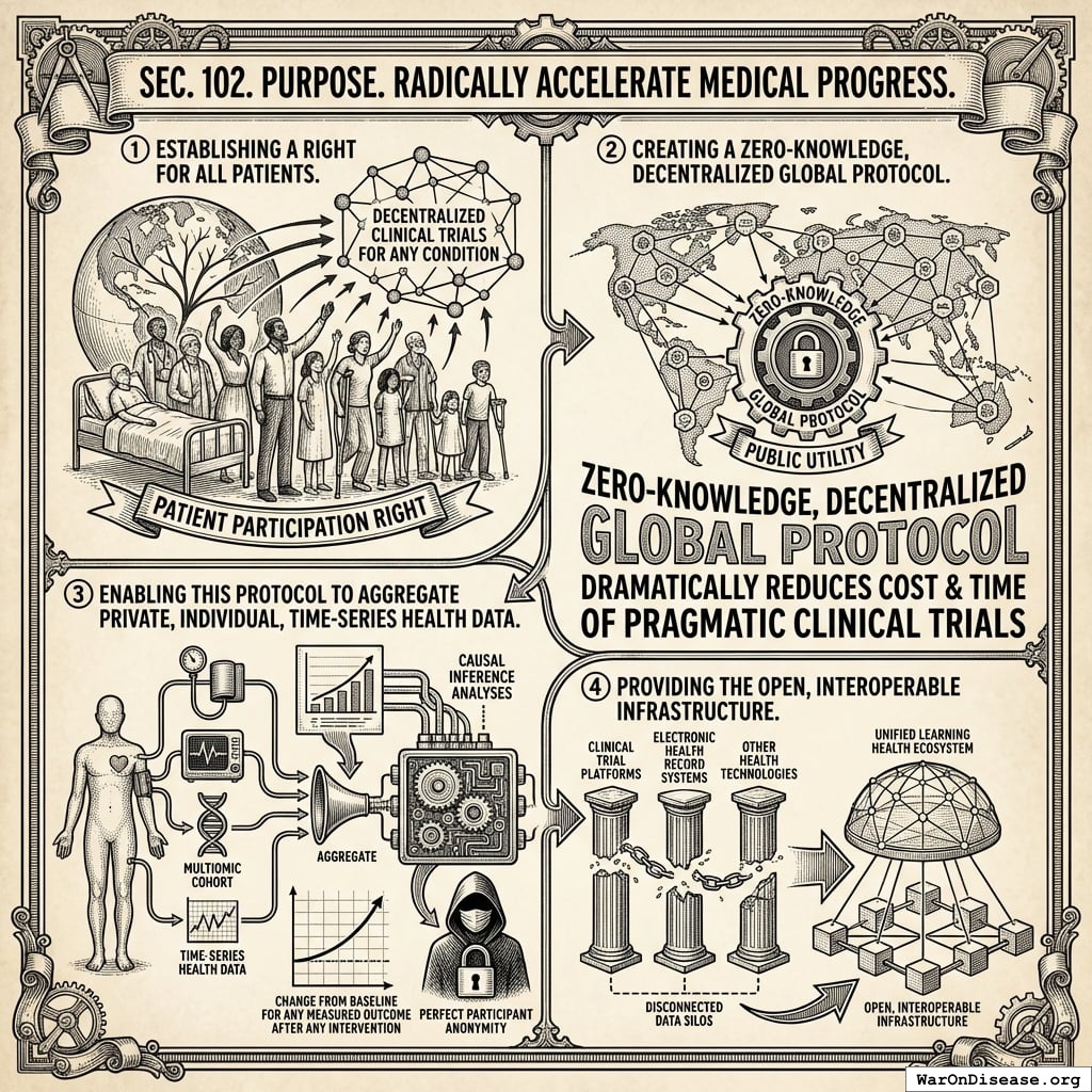 - Creating a zero-knowledge, decentralized global protocol to function as a public utility that dramatically reduces the cost and time of pragmatic clinical trials.
