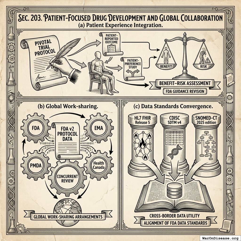 SEC. 203. PATIENT‑FOCUSED DRUG DEVELOPMENT AND GLOBAL COLLABORATION