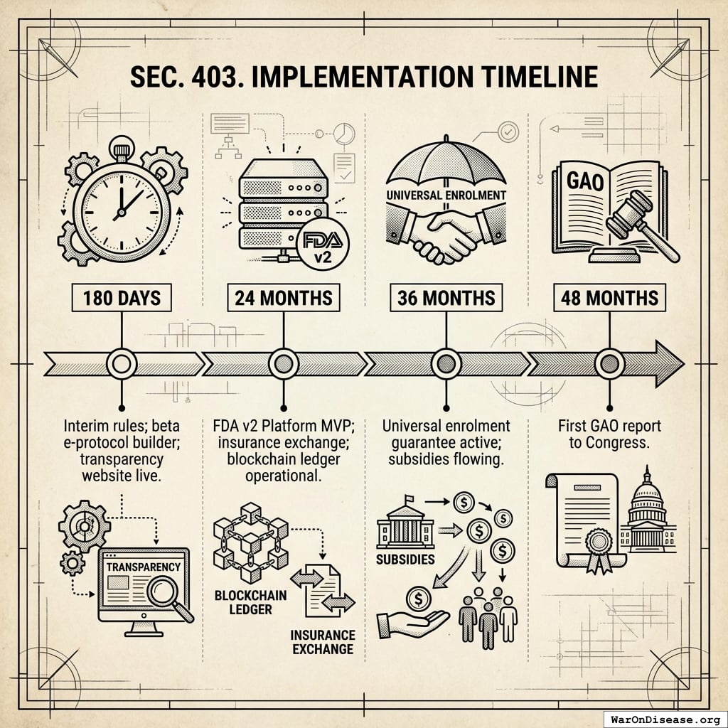 - Launch & Hosting. Within 12 months after enactment, the Secretary shall deploy an open-source, cloud-native FDA.gov v2 Decentralized Health Protocol, which shall include the FDA.gov Public Portal hosted on the fda.gov domain. All source code shall be mirrored in real-time to a public repository (e.g., github.com/fda/fda-v2).