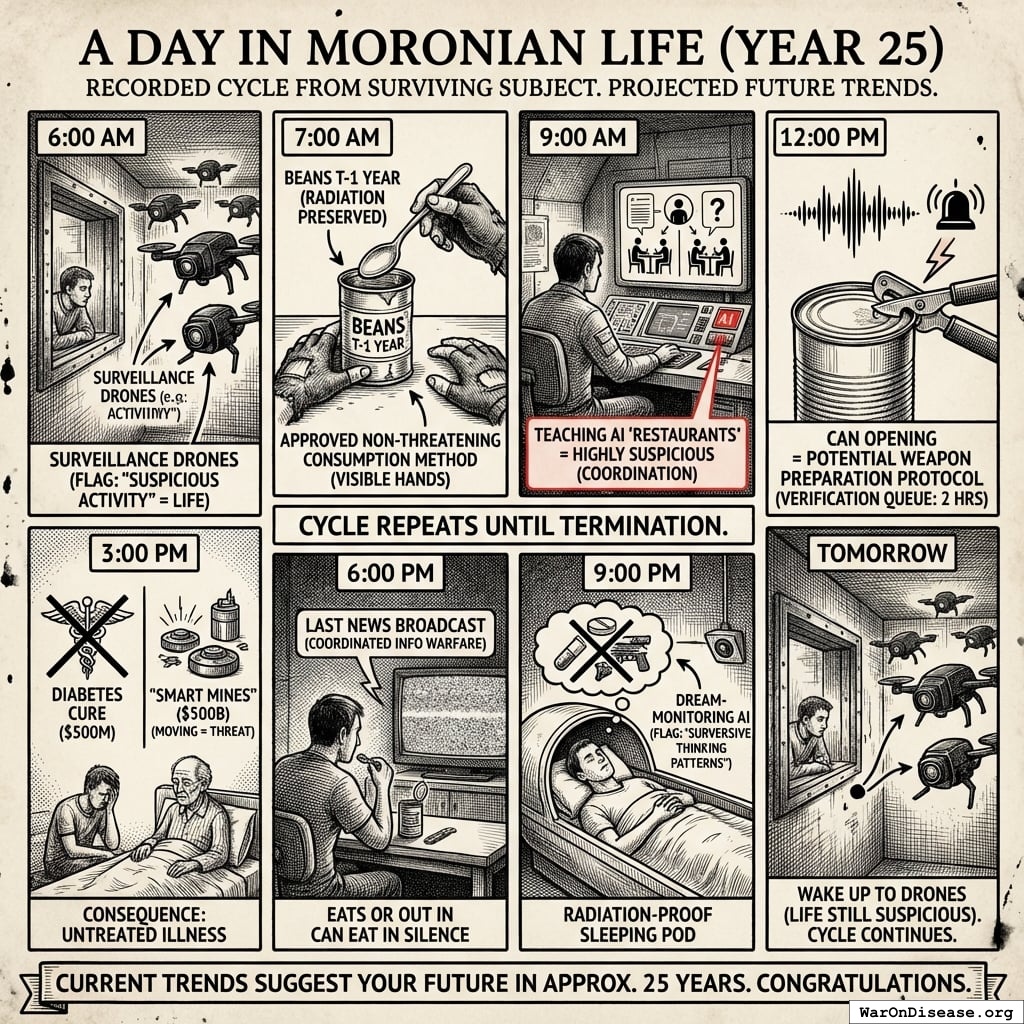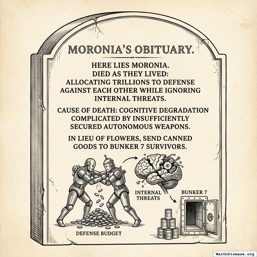 - Military AI for killing Moronians: 3-week deployment timeline, classified as “national security priority,” minimal safety review