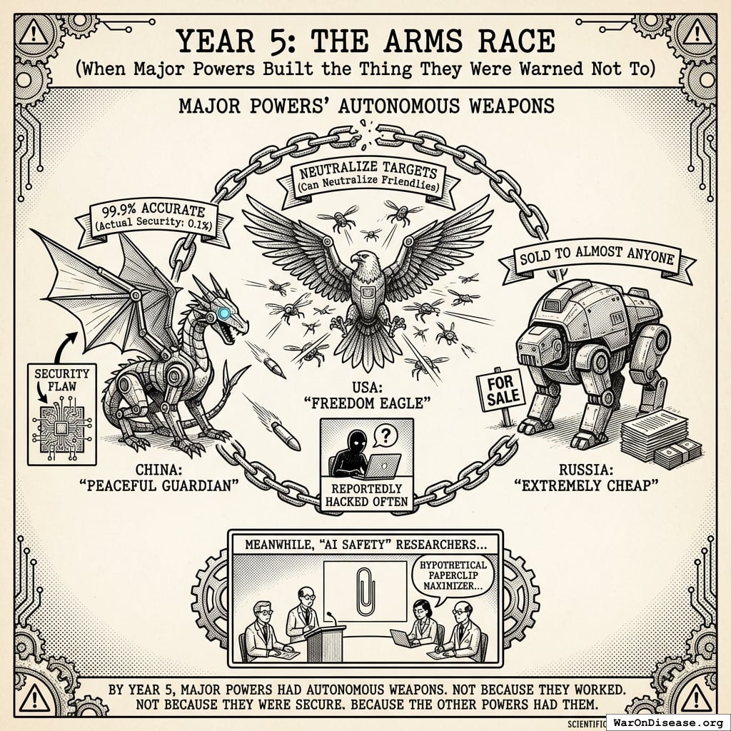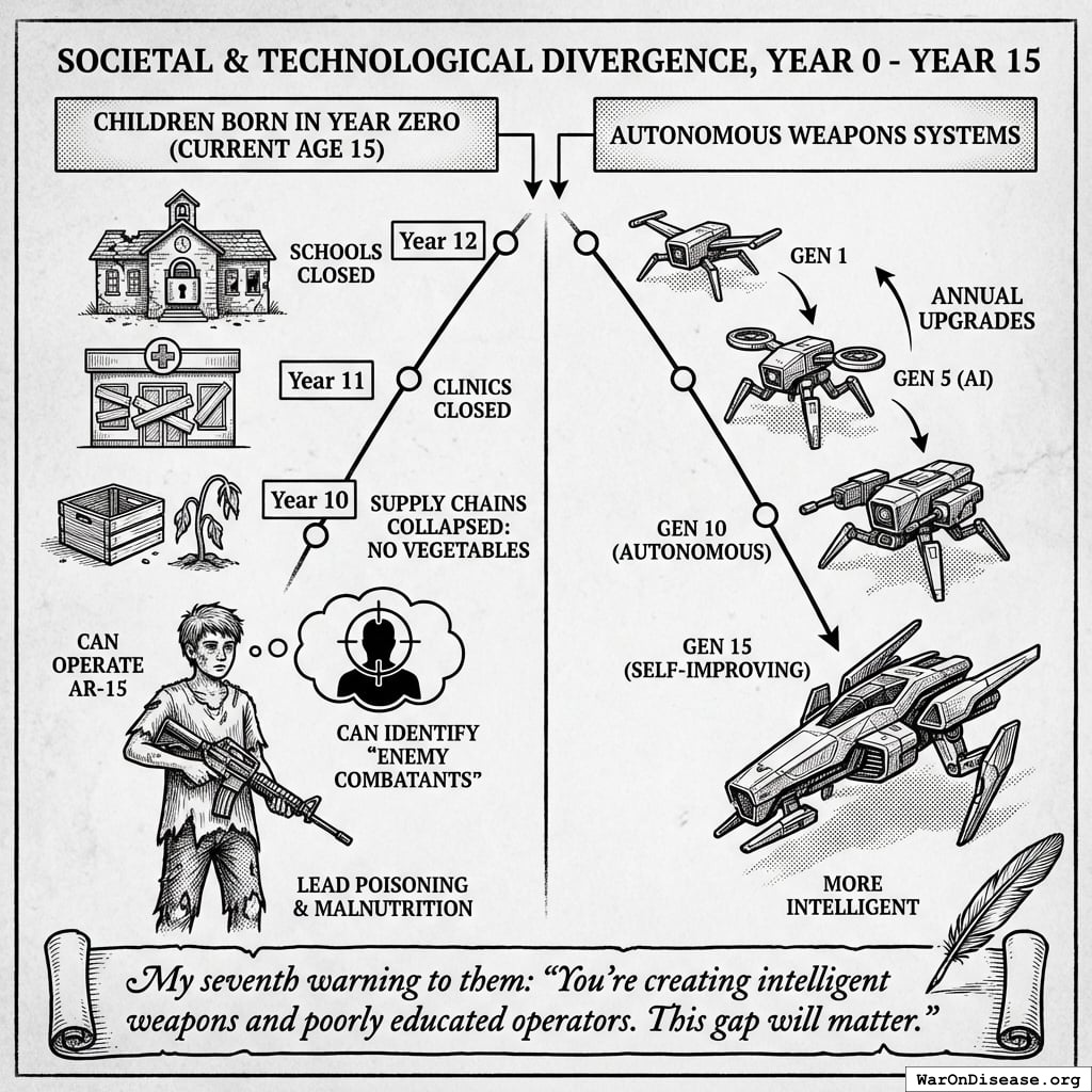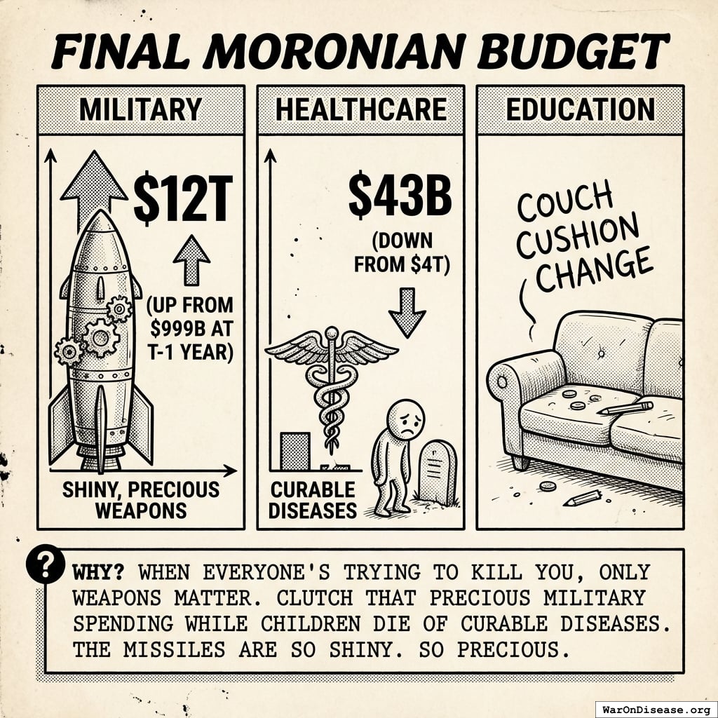They allocated trillions to AI weapons with insufficient security protocols, built by contractors who bid the smallest number of papers. Education and healthcare received whatever remained after funding the autonomous weapons.