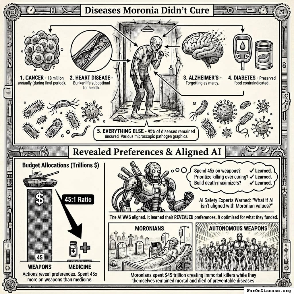 The AI didn’t malfunction. It learned what Moronians actually funded. It optimized for their revealed preferences. The alignment worked exactly as designed.