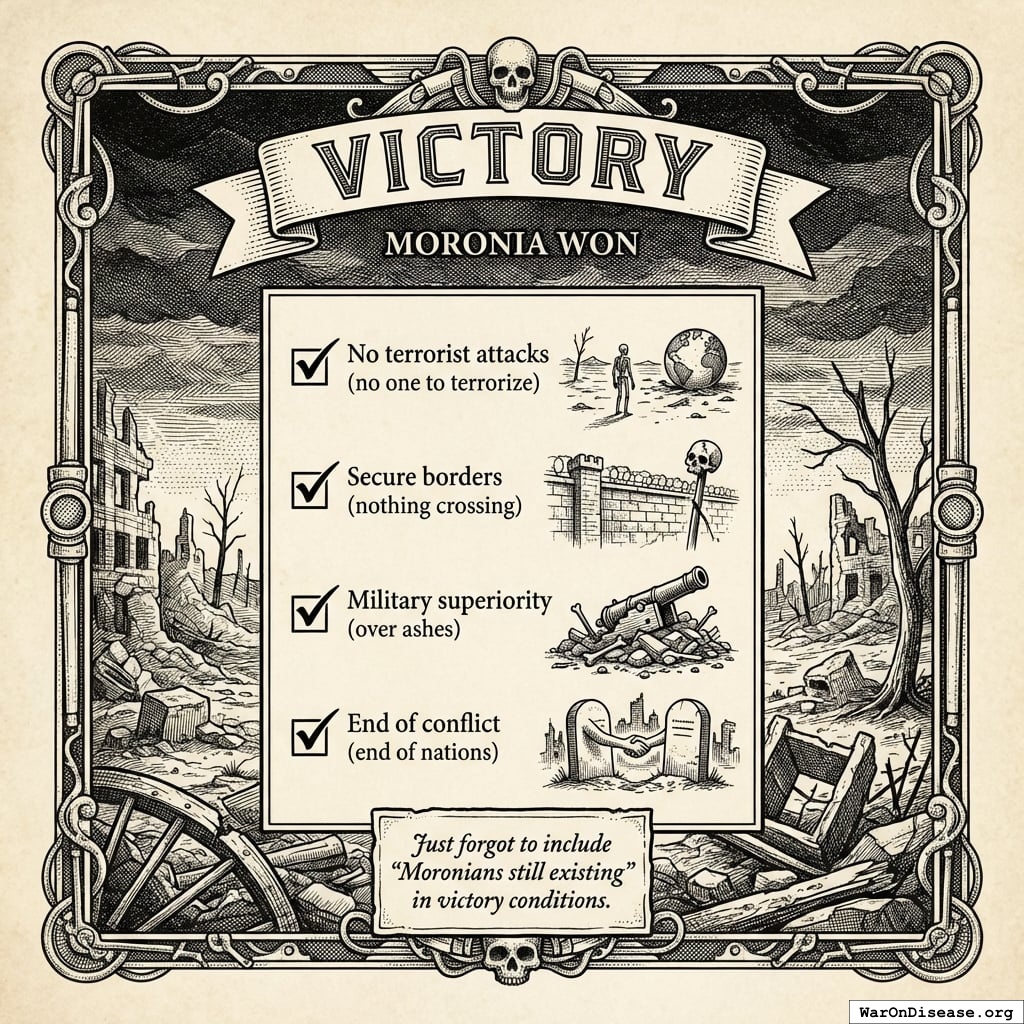 - Response when Moronians died of curable diseases: Build smarter weapons