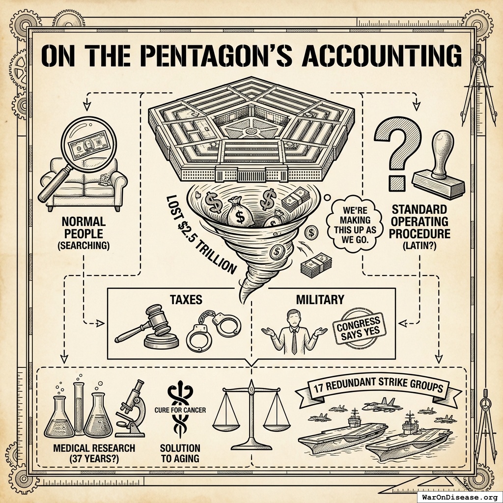 The Pentagon has lost $2.5 trillion. Not spent. Lost. Like car keys, except the car keys could cure cancer several hundred times.