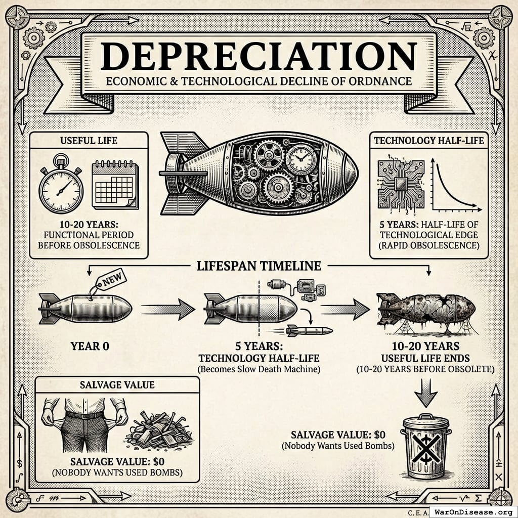 - Salvage value: $0 (nobody wants used bombs)