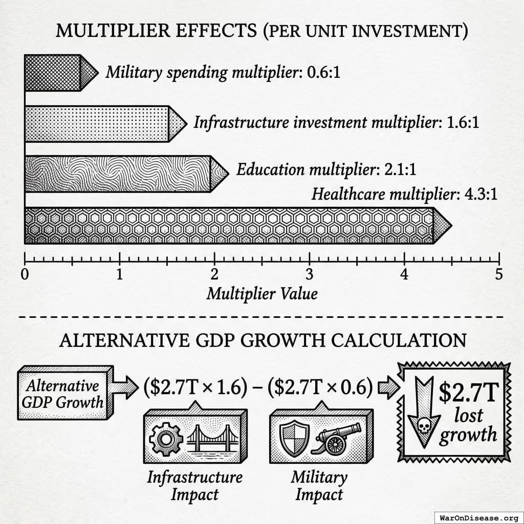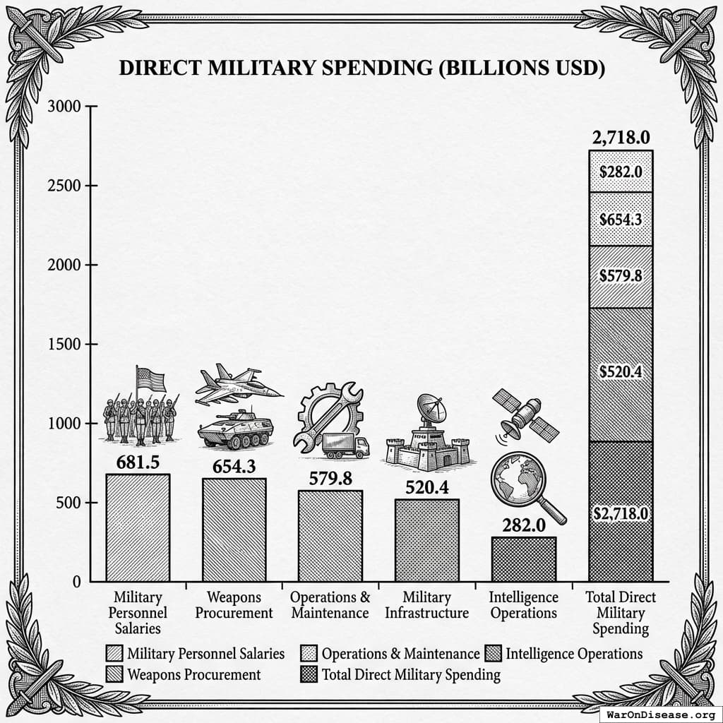 - WWII Peak (1944): $3.27 trillion - the largest military mobilization in human history, still exceeding modern spending