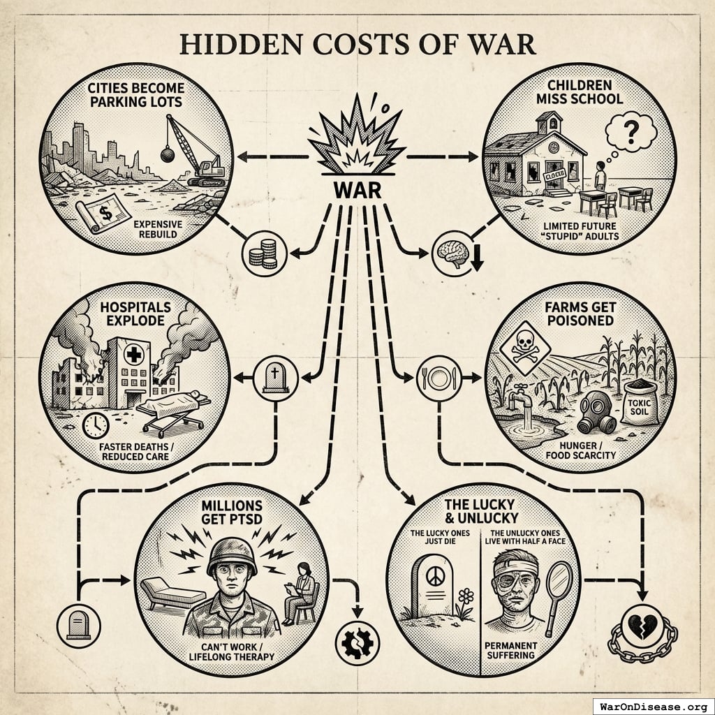 The immediate costs of war are like a grocery receipt from Hell. Everything is itemized. Everything has a price.