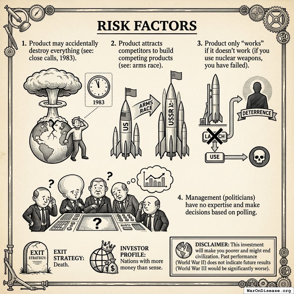 A bomb is not an asset. It’s a very expensive liability you’re storing in case you need to create more liabilities later. It’s like filling your garage with dynamite and calling it “home security.”