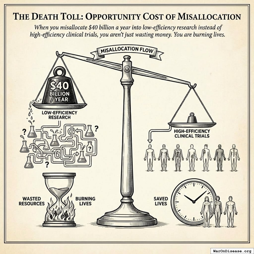 When you misallocate $40 billion a year into low-efficiency research instead of high-efficiency clinical trials, you aren’t just wasting money. You are burning lives.