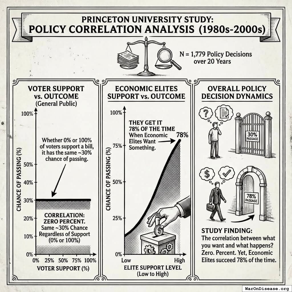 Princeton University did a study. They analyzed 1,779 policy decisions over 20 years. The correlation between what you want and what happens? Zero. Percent.140