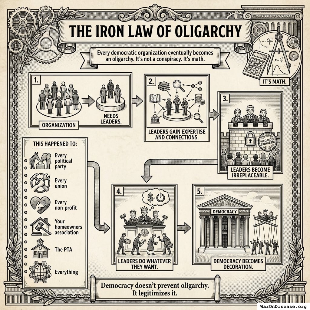 Every democratic organization eventually becomes an oligarchy. It’s not a conspiracy. It’s math.