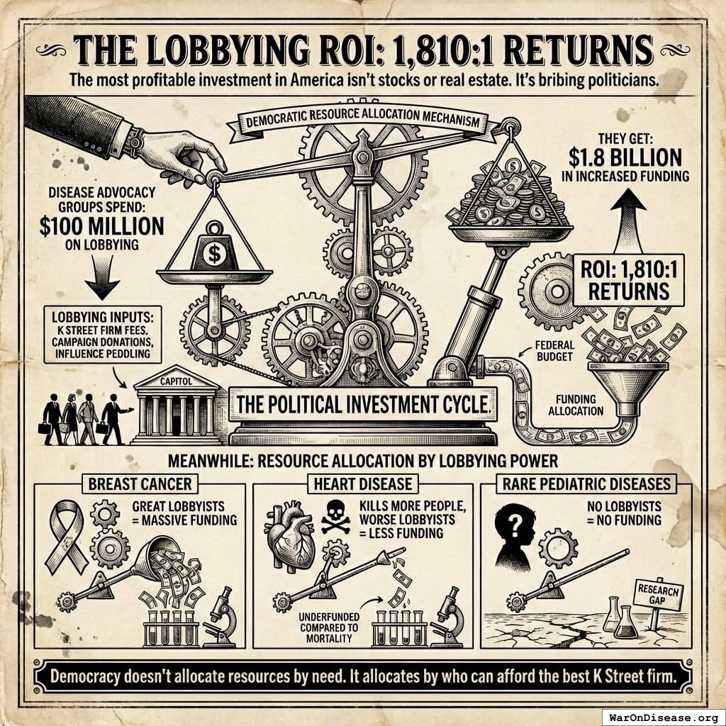Democracy doesn’t allocate resources by need. It allocates by who can afford the best K Street firm.