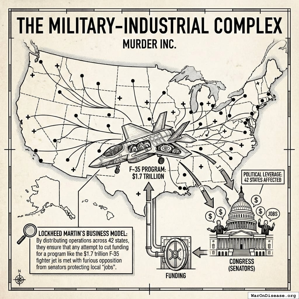 - Military contractors: $999 billion concentrated benefit141 (37% of $2.72T global spending)