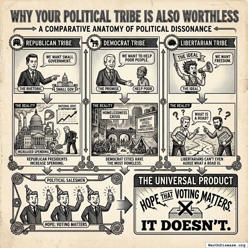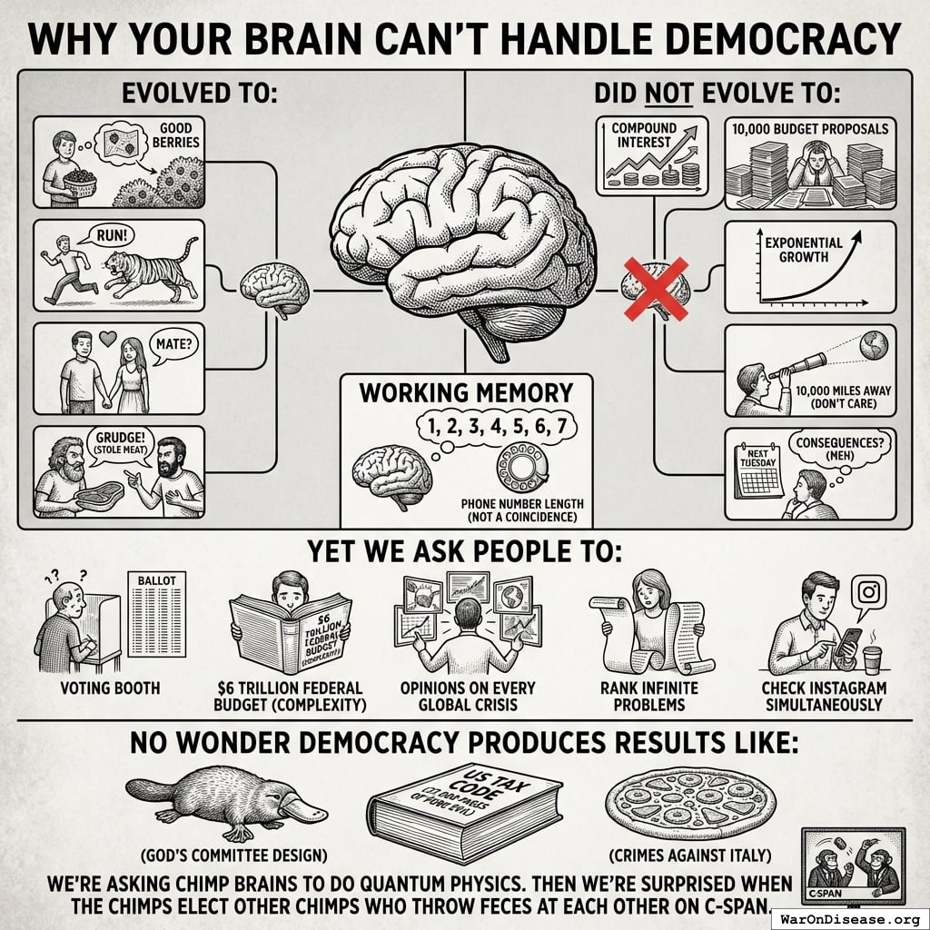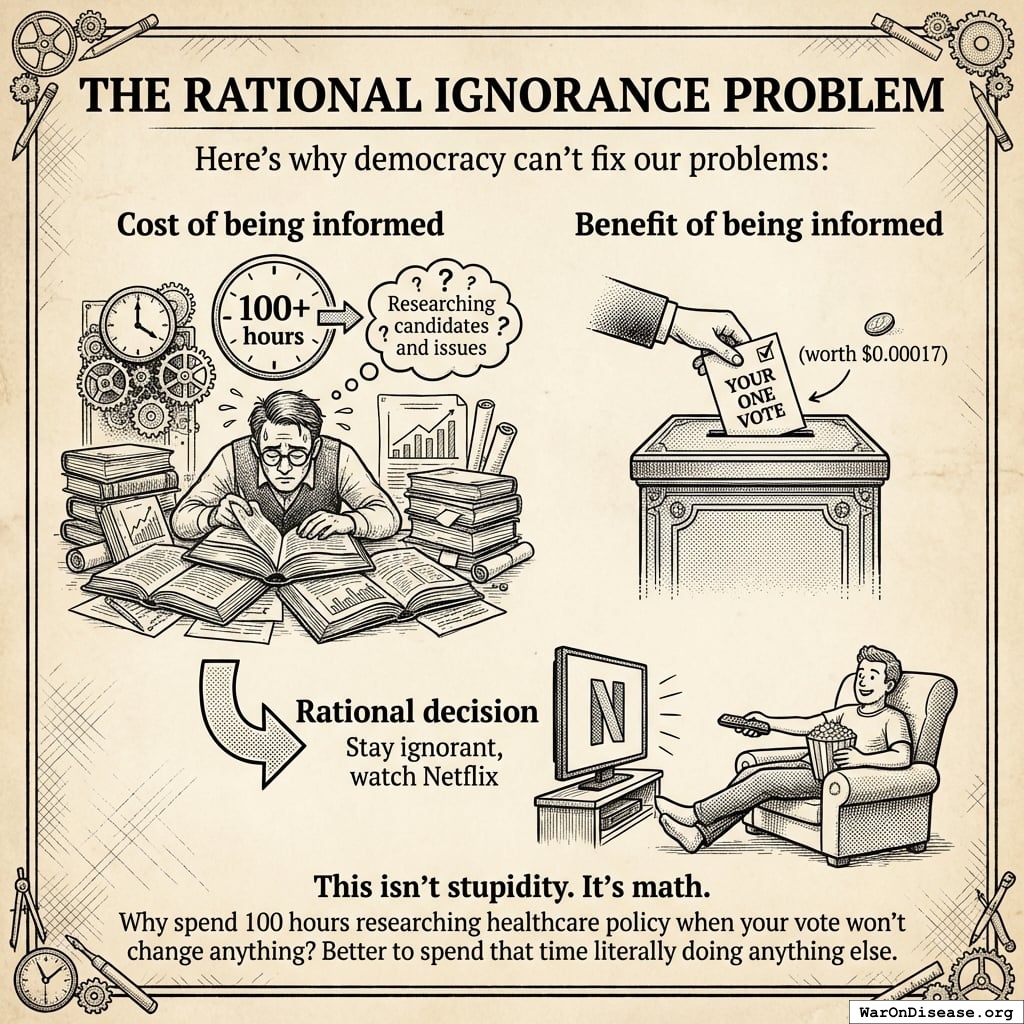 Why spend 100 hours researching healthcare policy when your vote won’t change anything? Better to spend that time literally doing anything else.