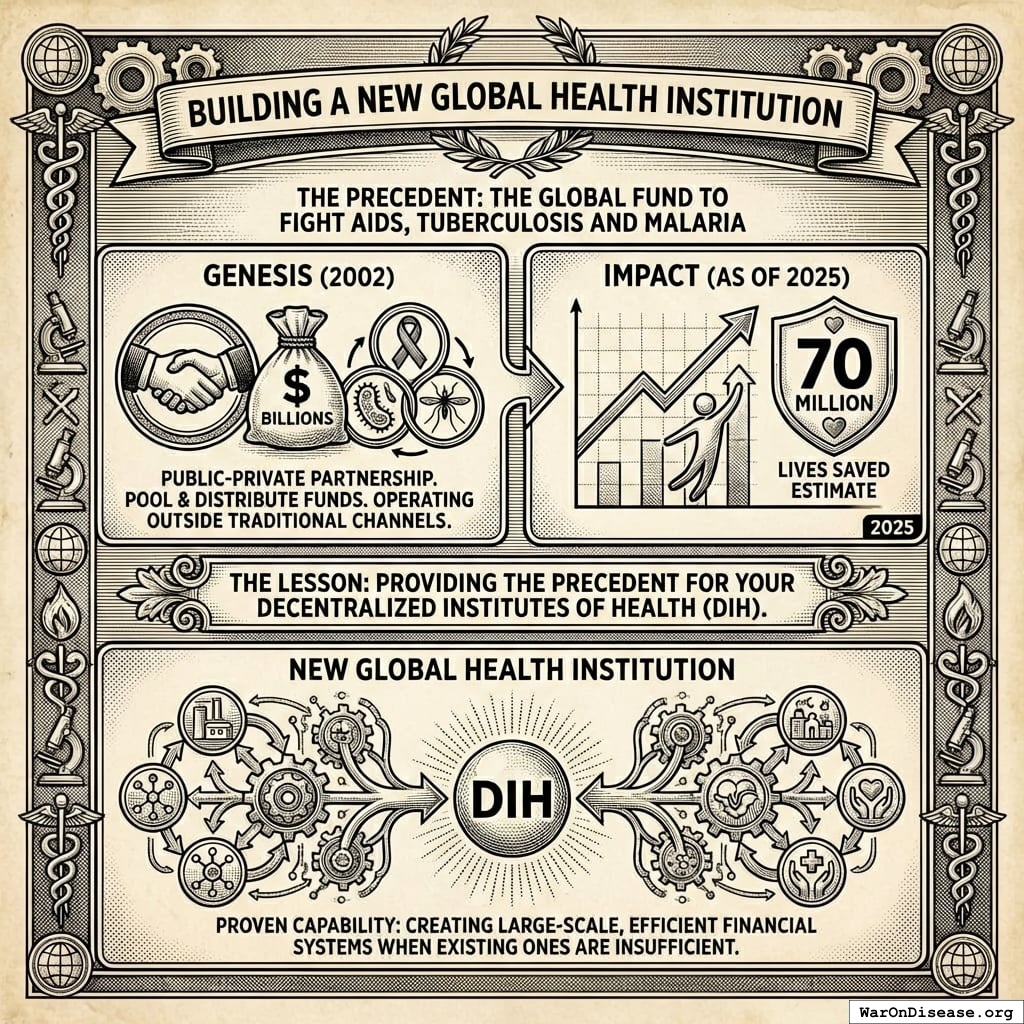 The Lesson: This provides the precedent for your decentralized institutes of health (DIH). It proves that the world is capable of creating new, large-scale, and more efficient financial institutions for global health when the existing systems are insufficient.