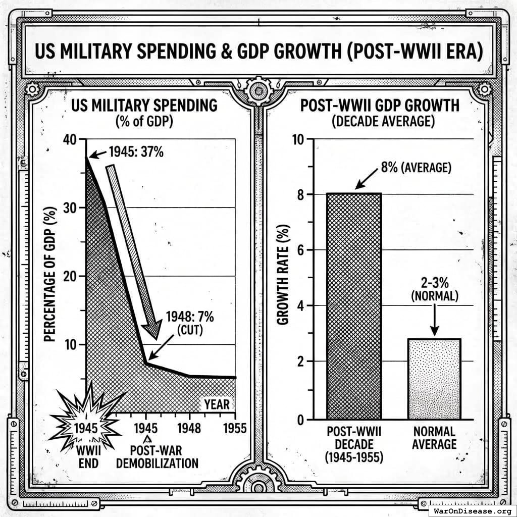 The difference went to education, healthcare, and trains that actually work. Peace dividends compound over centuries. War debts compound faster.