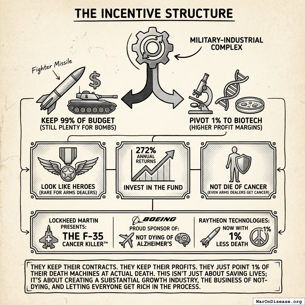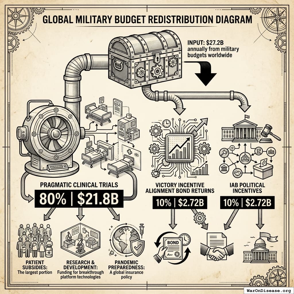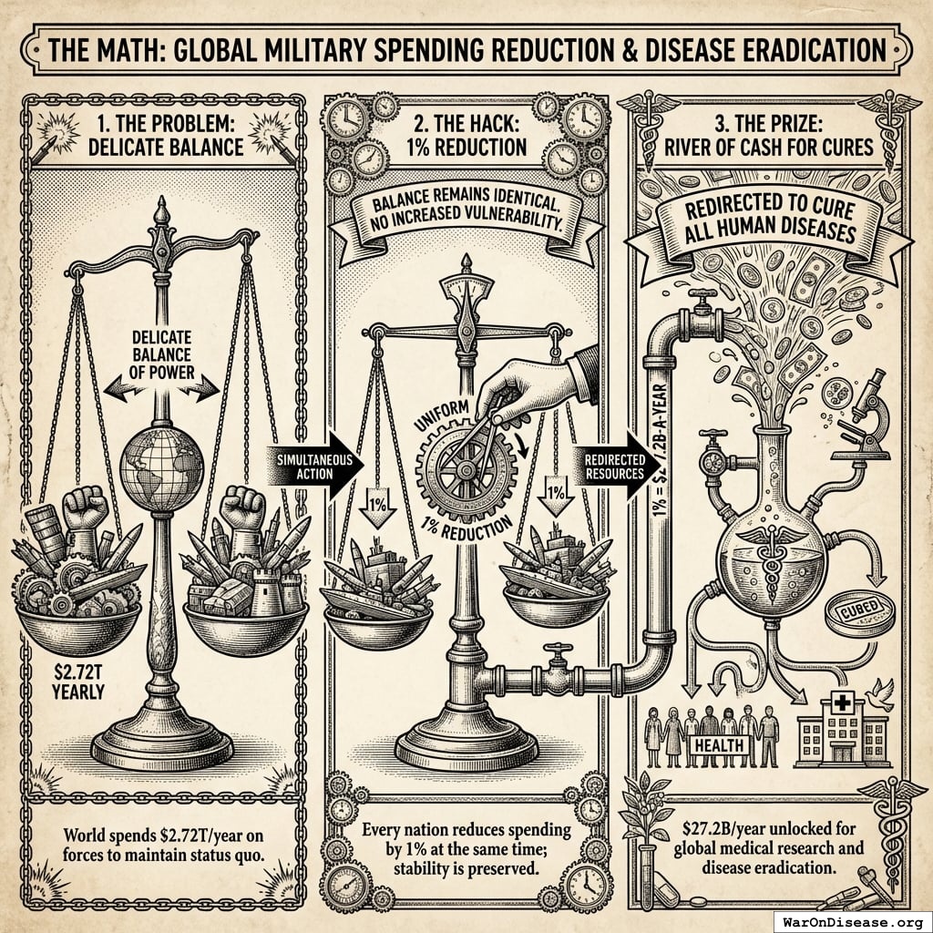 - The Prize: That 1%, a $27.2B-a-year river of cash, is redirected to cure all human diseases.