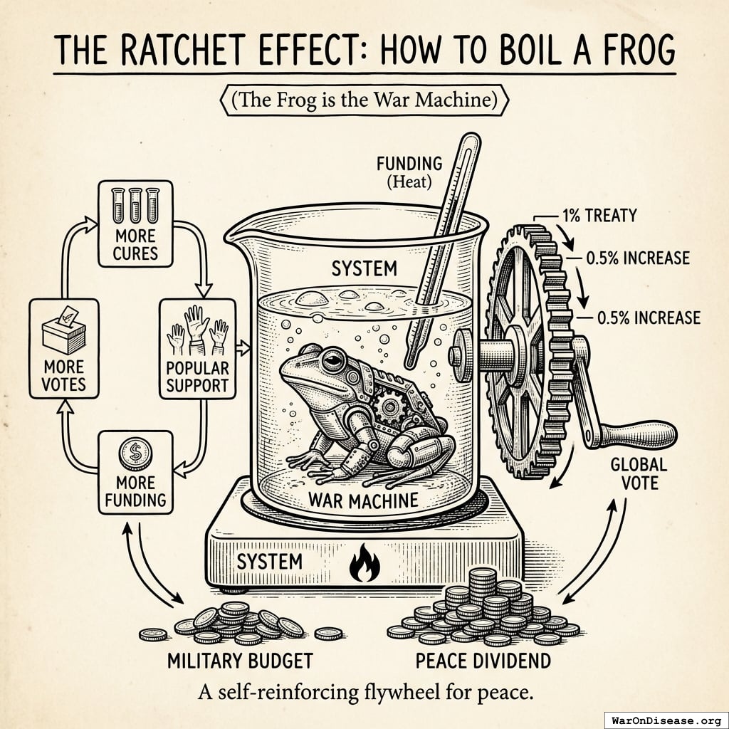 - The Hack: If every nation reduces military spending by 1% at the same time, the balance of power remains identical. No country becomes more vulnerable.