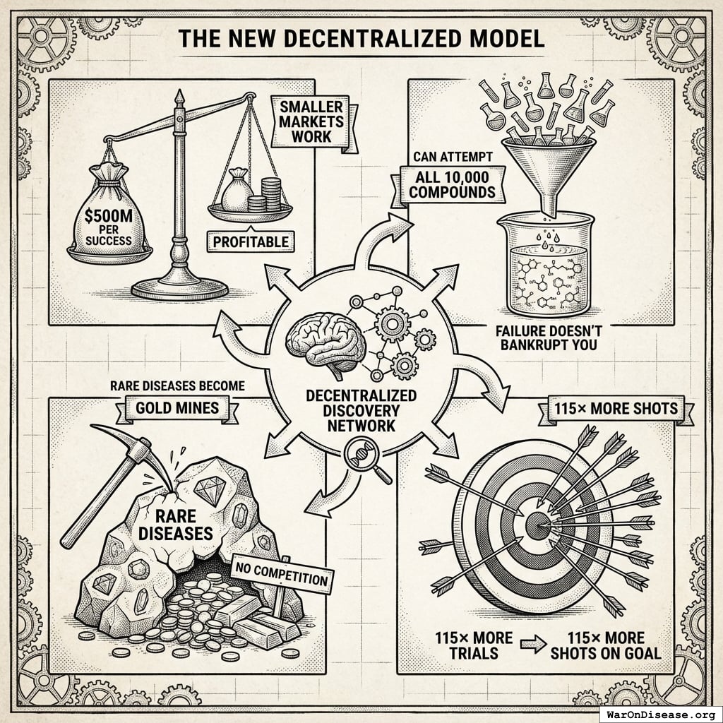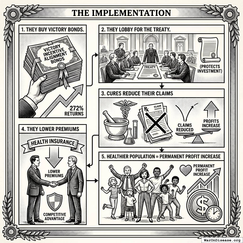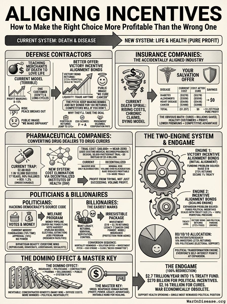 You can align major interest groups behind a single goal: curing disease. Not through charity. Not through guilt. Through pure profit.