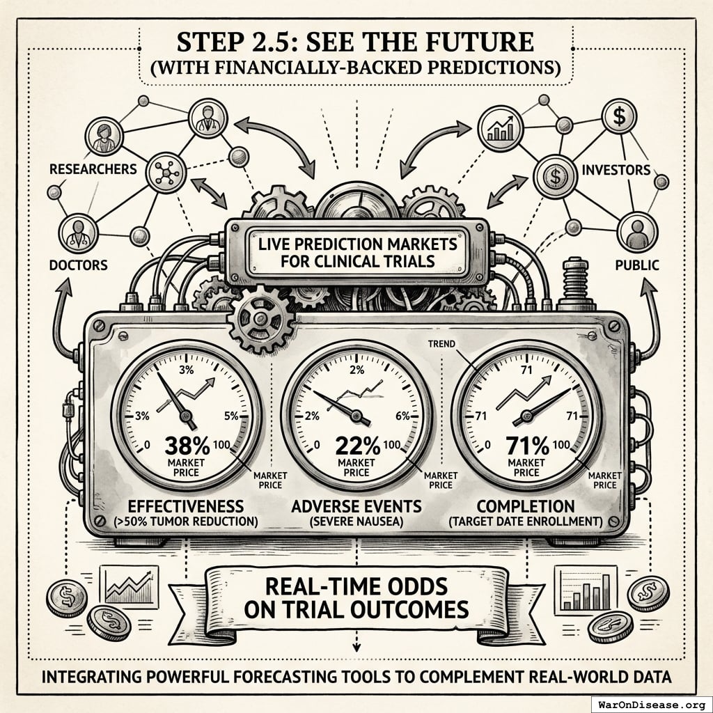 To complement the real-world data from past patients, the system will integrate a powerful forecasting tool: live prediction markets.