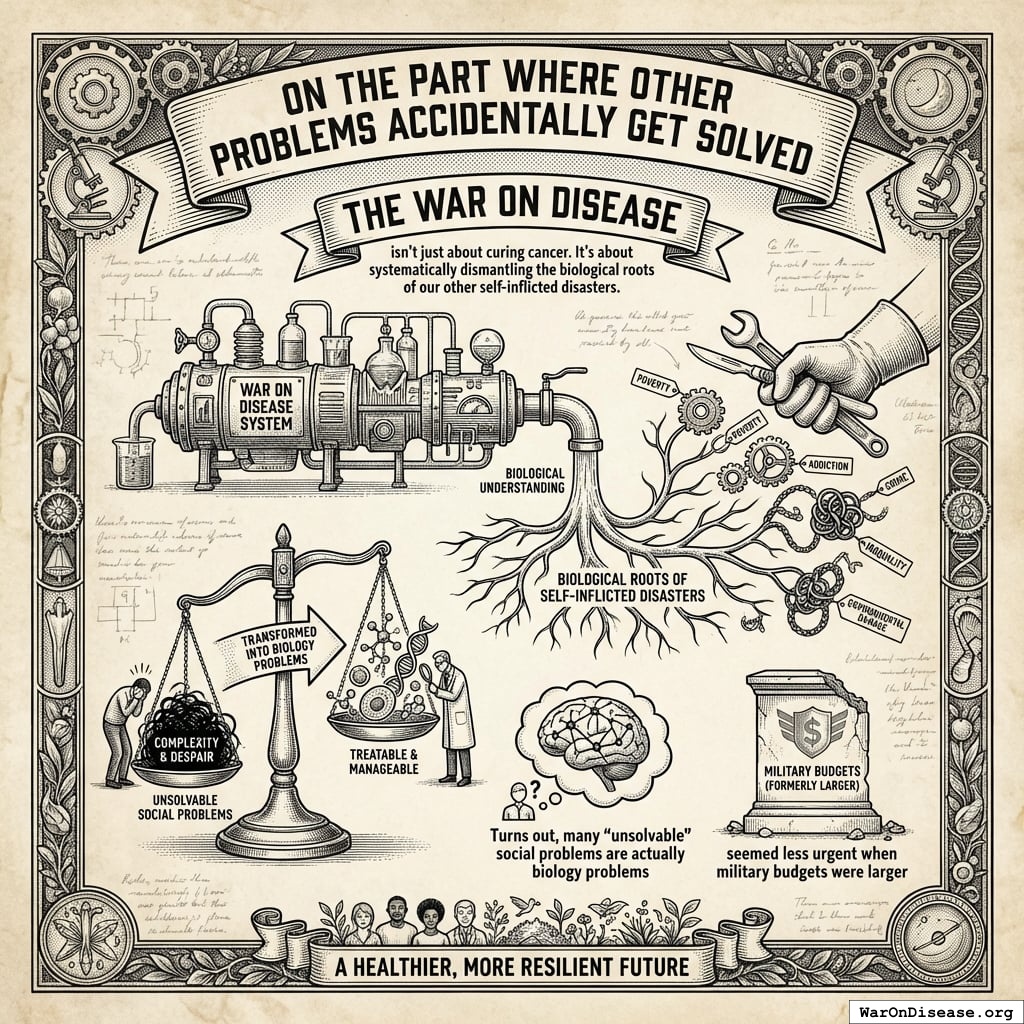 The War on Disease isn’t just about curing cancer. It’s about systematically dismantling the biological roots of our other self-inflicted disasters.