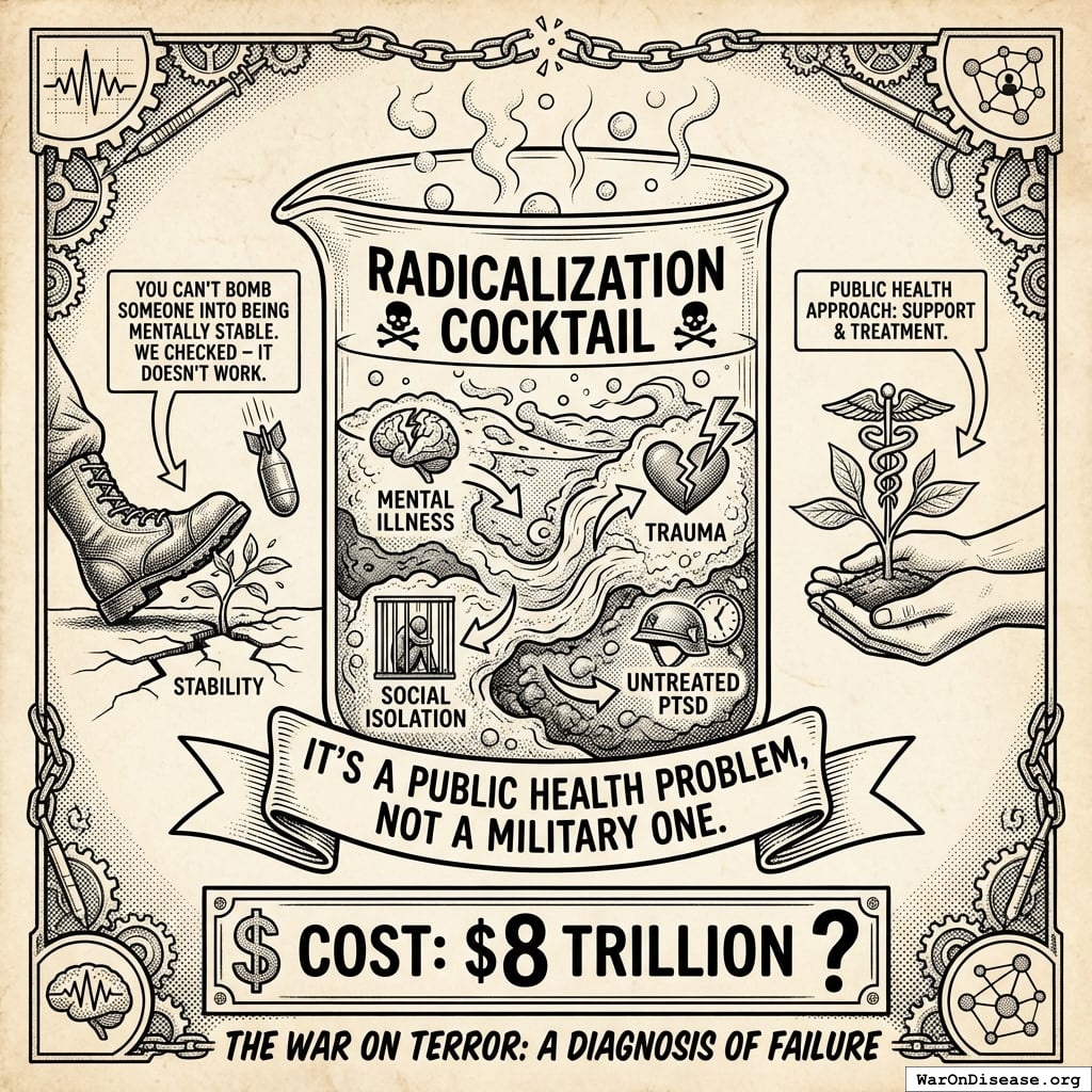 It’s a public health problem, not a military one. You can’t bomb someone into being mentally stable. We checked - it doesn’t work. Cost $8 trillion though.