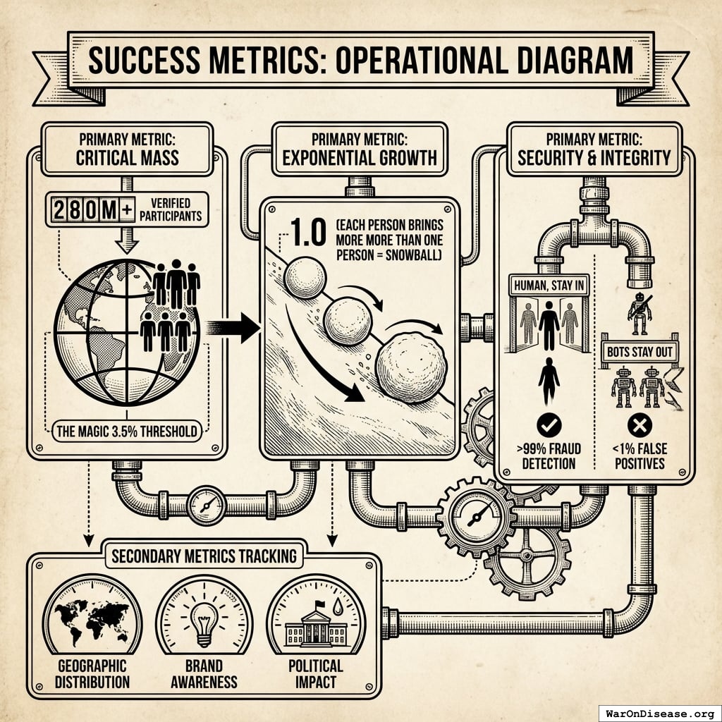 - Viral Growth: Needs to spread organically, targeting $0.50-0.64 per verified participant (includes referral payment + biometric verification + platform overhead)