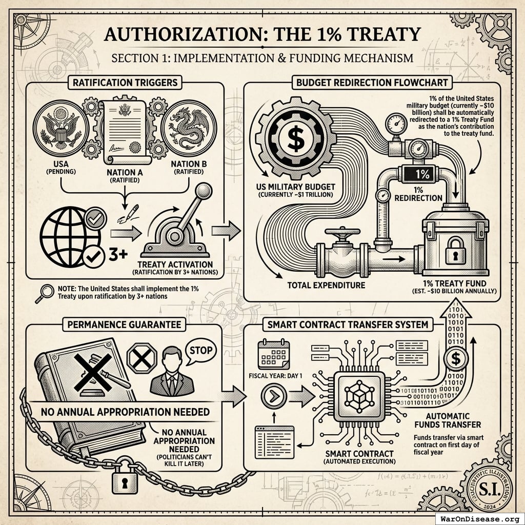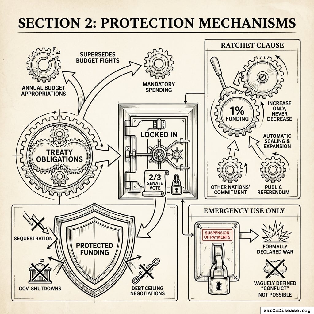 - Ratchet Clause: The 1% funding can only increase, never decrease. It automatically scales if other nations increase their commitment and can be expanded by public referendum.