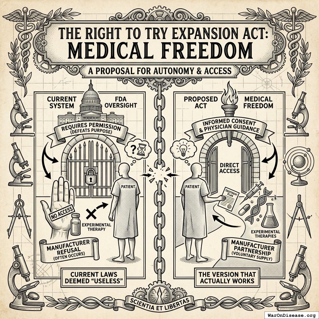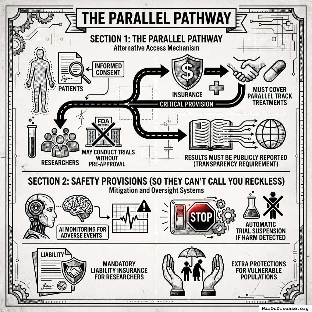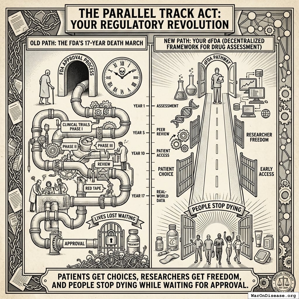 This act creates your decentralized framework for drug assessment (dFDA), a legal pathway for treatments to operate outside the FDA’s 17-year death march. Patients get choices, researchers get freedom, and people stop dying while waiting for approval.